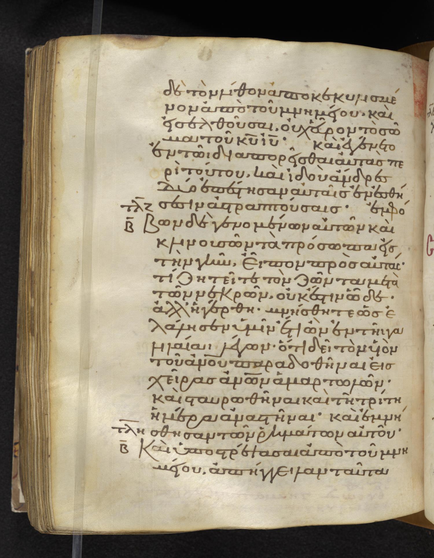 Eleventh-century minuscule of the Gospels on parchment; 310 leaves, 1 column, 22–24 lines per column. Images were taken at the Lambeth Palace Library.