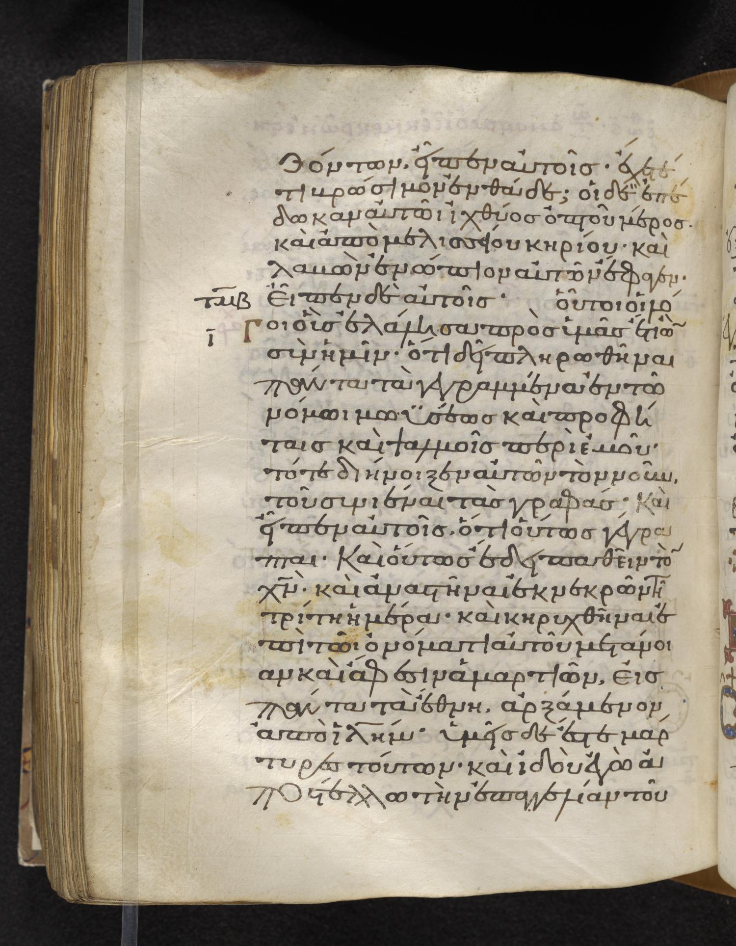 Eleventh-century minuscule of the Gospels on parchment; 310 leaves, 1 column, 22–24 lines per column. Images were taken at the Lambeth Palace Library.