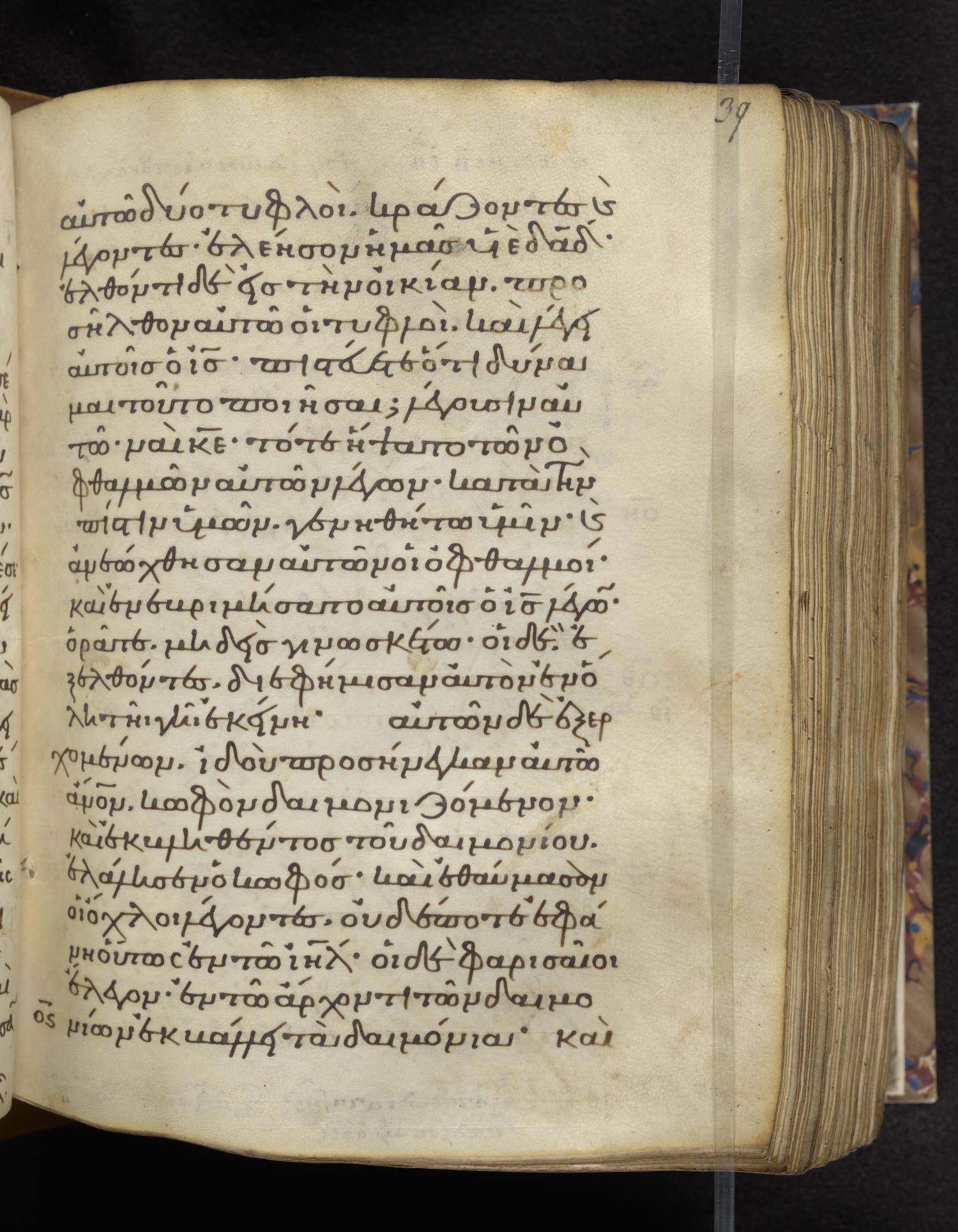 Eleventh-century minuscule of the Gospels on parchment; 310 leaves, 1 column, 22–24 lines per column. Images were taken at the Lambeth Palace Library.