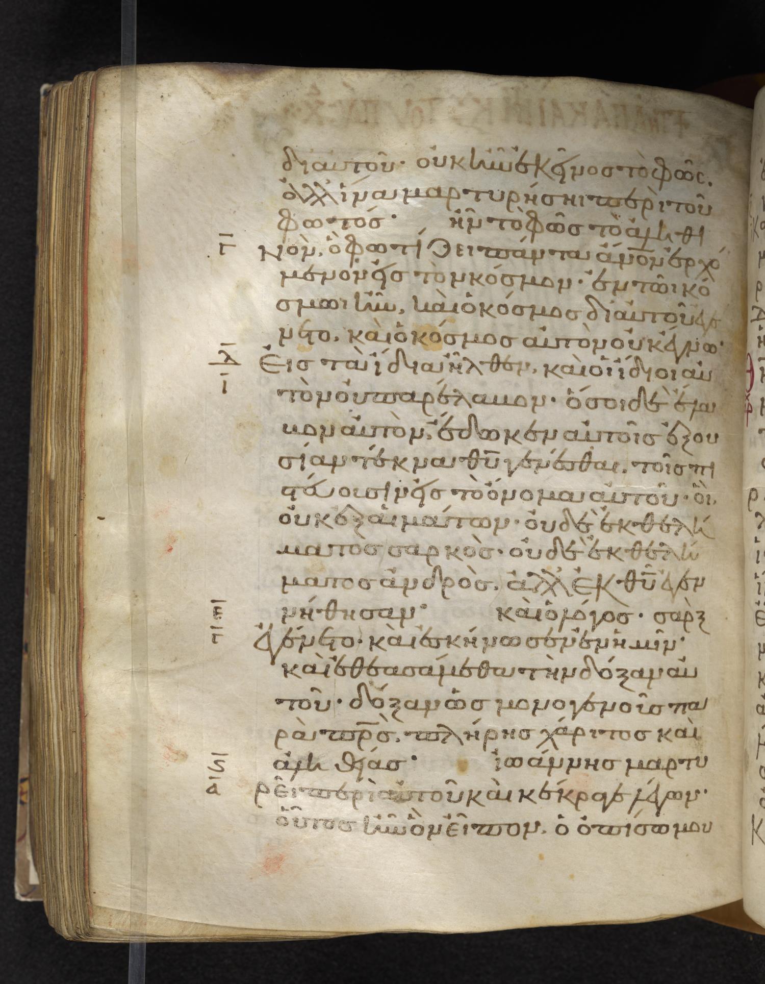 Eleventh-century minuscule of the Gospels on parchment; 310 leaves, 1 column, 22–24 lines per column. Images were taken at the Lambeth Palace Library.
