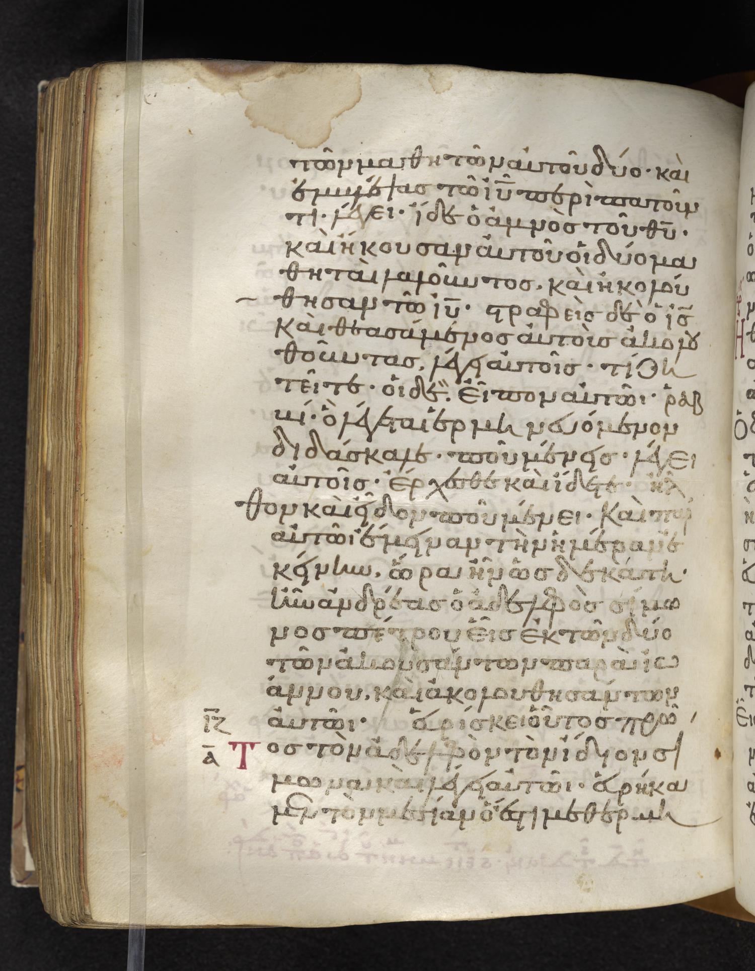 Eleventh-century minuscule of the Gospels on parchment; 310 leaves, 1 column, 22–24 lines per column. Images were taken at the Lambeth Palace Library.