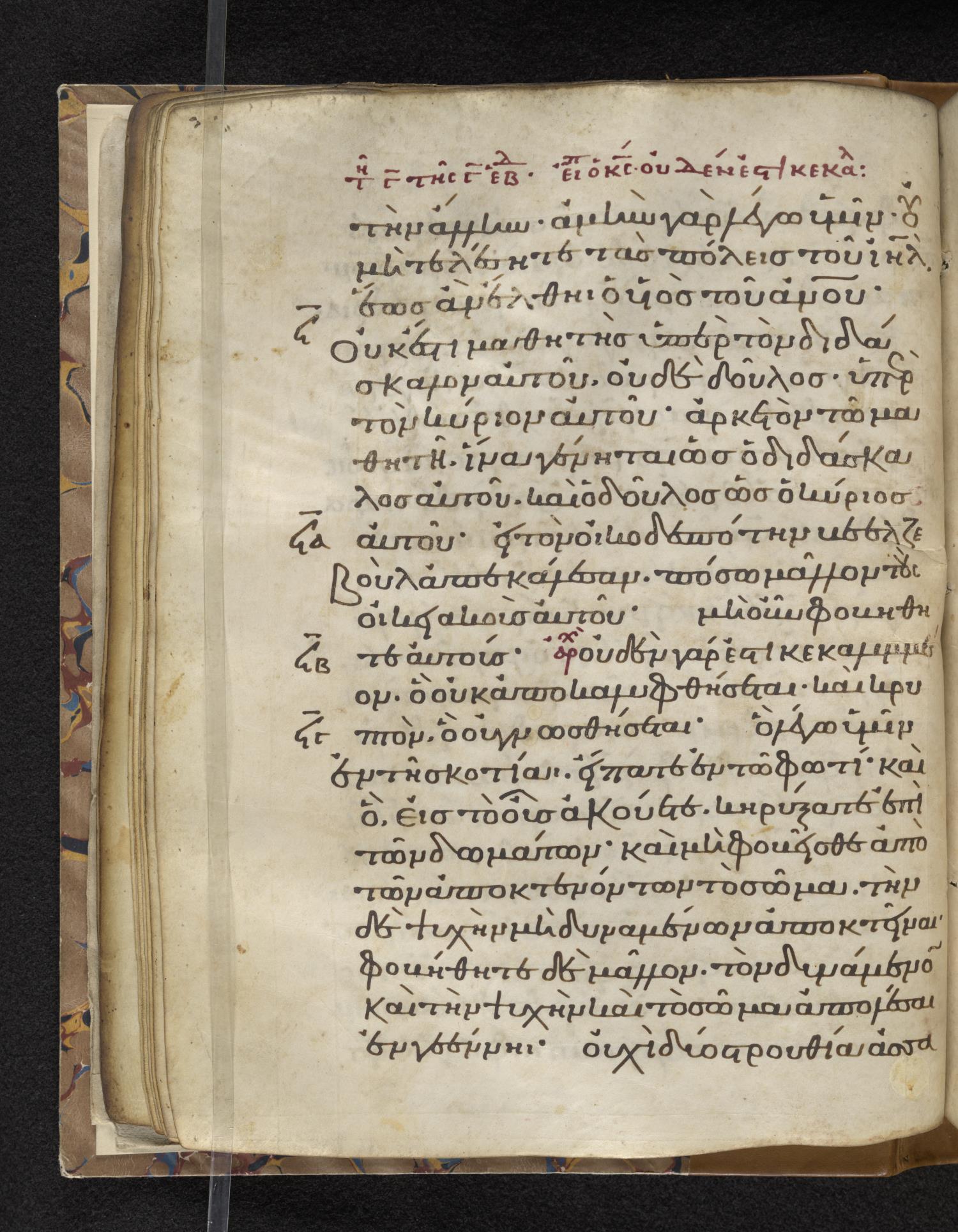 Eleventh-century minuscule of the Gospels on parchment; 310 leaves, 1 column, 22–24 lines per column. Images were taken at the Lambeth Palace Library.