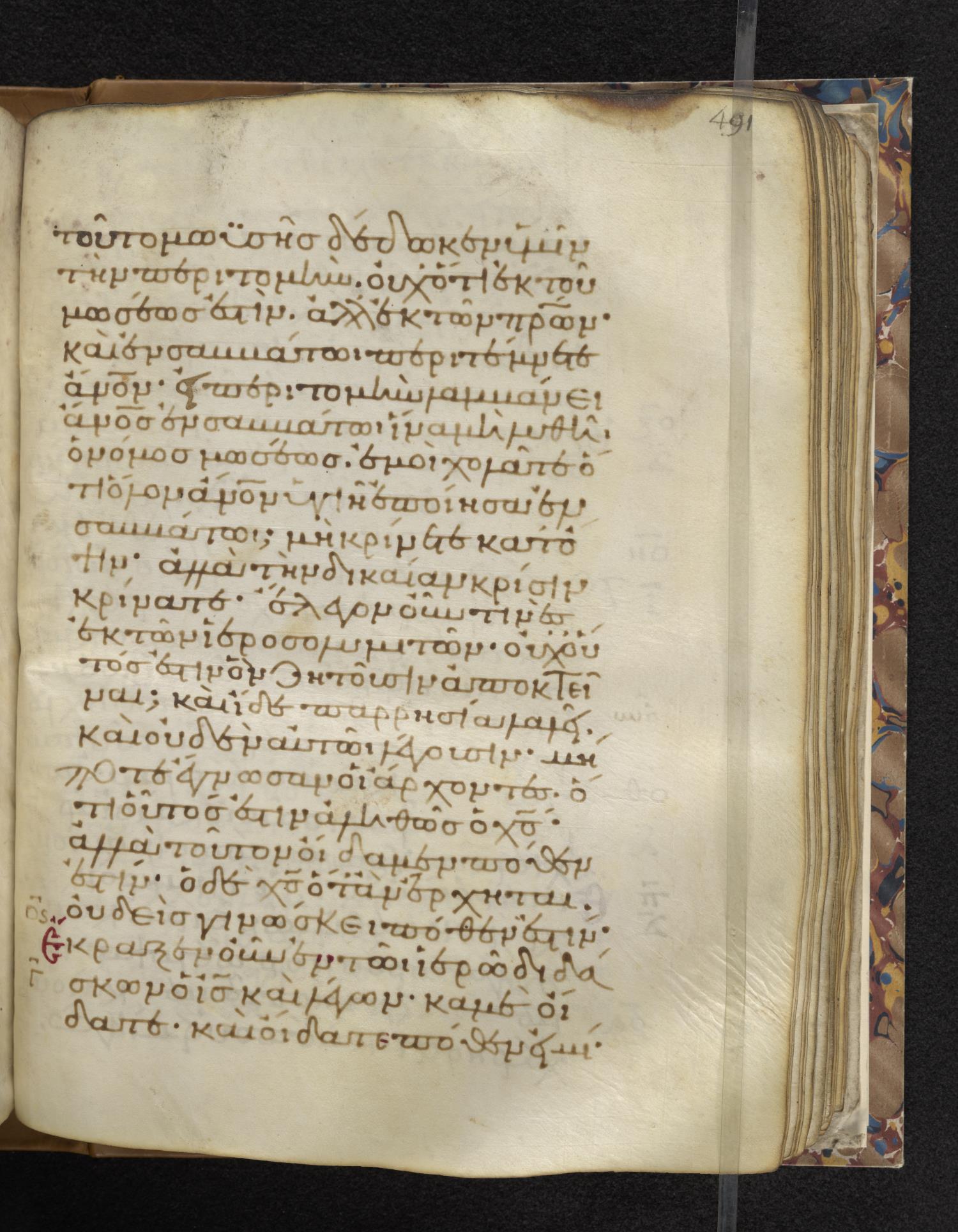 Eleventh-century minuscule of the Gospels on parchment; 310 leaves, 1 column, 22–24 lines per column. Images were taken at the Lambeth Palace Library.