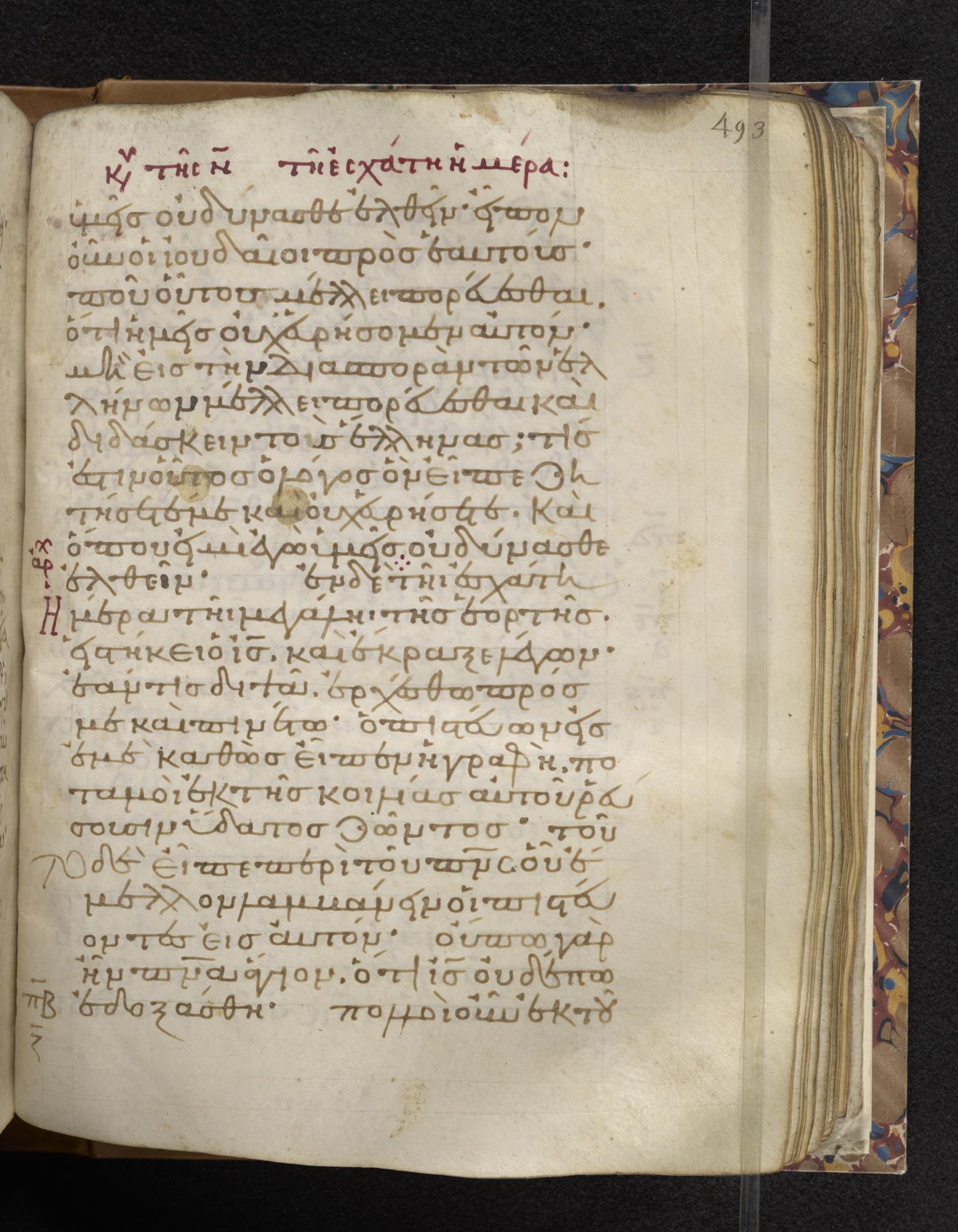 Eleventh-century minuscule of the Gospels on parchment; 310 leaves, 1 column, 22–24 lines per column. Images were taken at the Lambeth Palace Library.