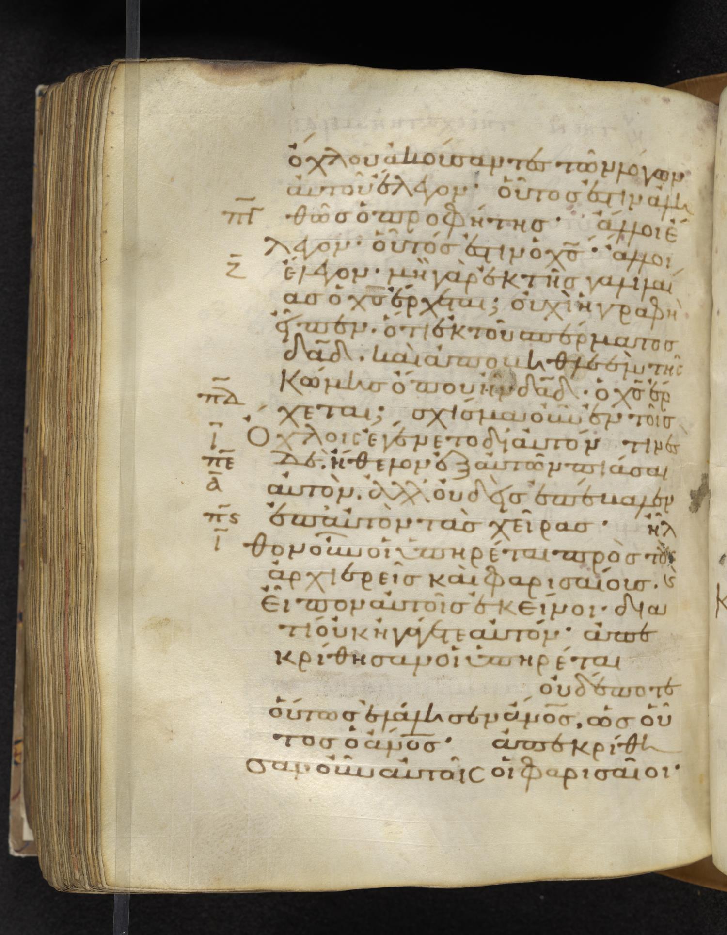 Eleventh-century minuscule of the Gospels on parchment; 310 leaves, 1 column, 22–24 lines per column. Images were taken at the Lambeth Palace Library.