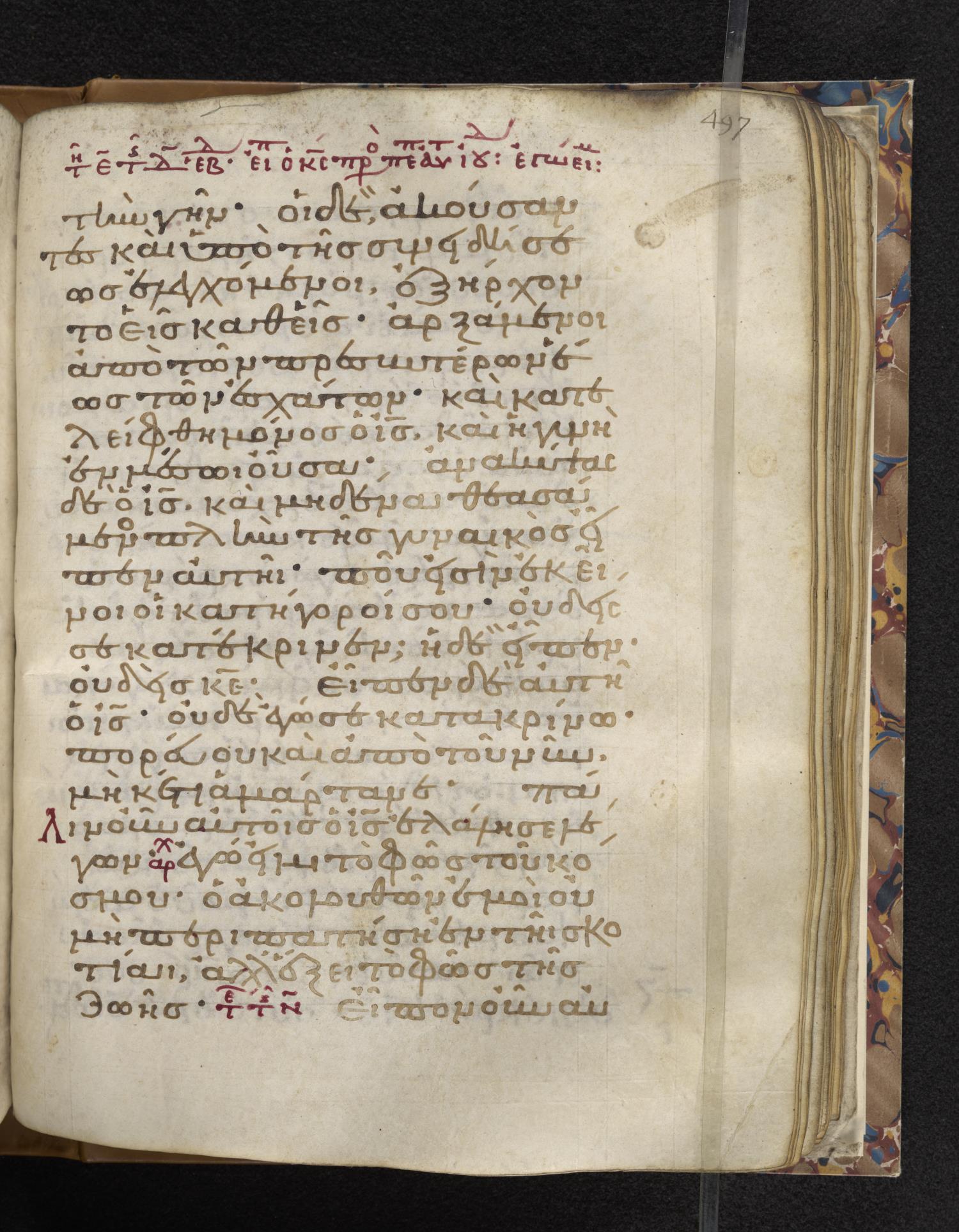 Eleventh-century minuscule of the Gospels on parchment; 310 leaves, 1 column, 22–24 lines per column. Images were taken at the Lambeth Palace Library.