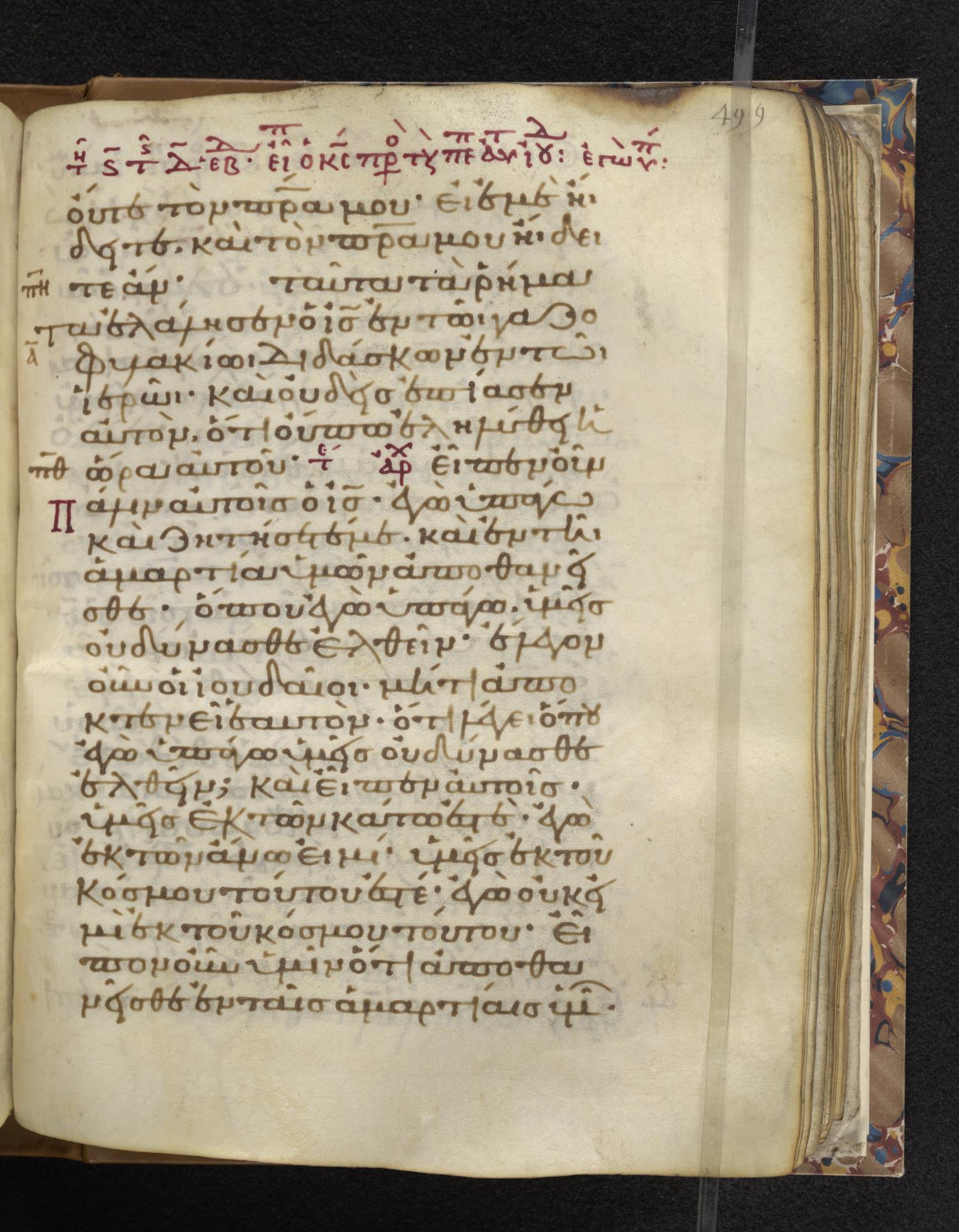 Eleventh-century minuscule of the Gospels on parchment; 310 leaves, 1 column, 22–24 lines per column. Images were taken at the Lambeth Palace Library.