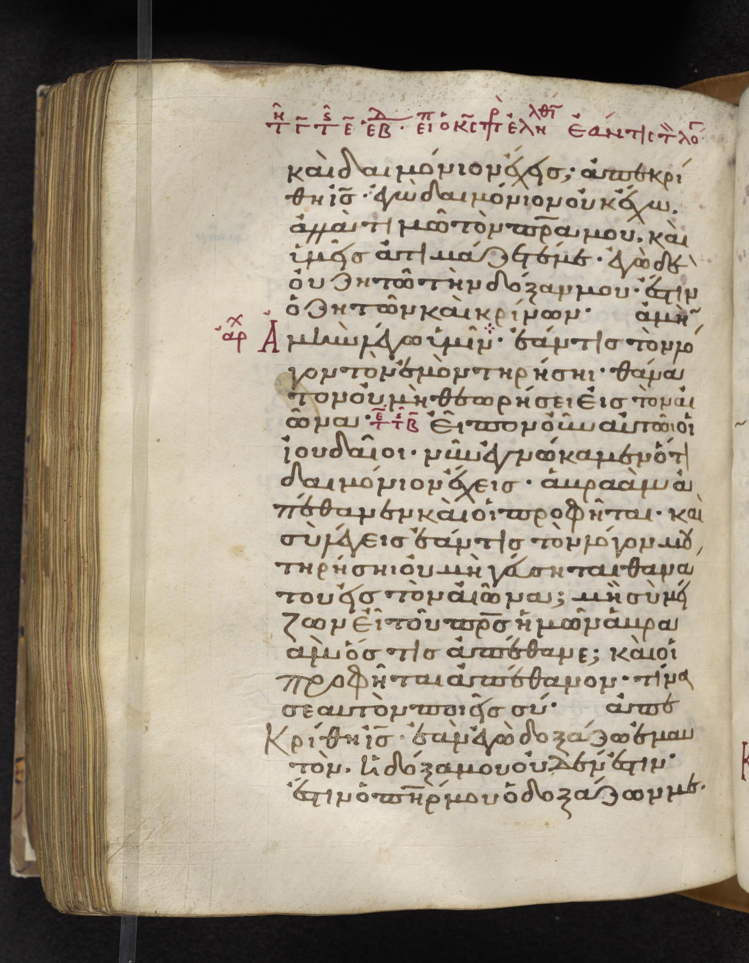 Eleventh-century minuscule of the Gospels on parchment; 310 leaves, 1 column, 22–24 lines per column. Images were taken at the Lambeth Palace Library.