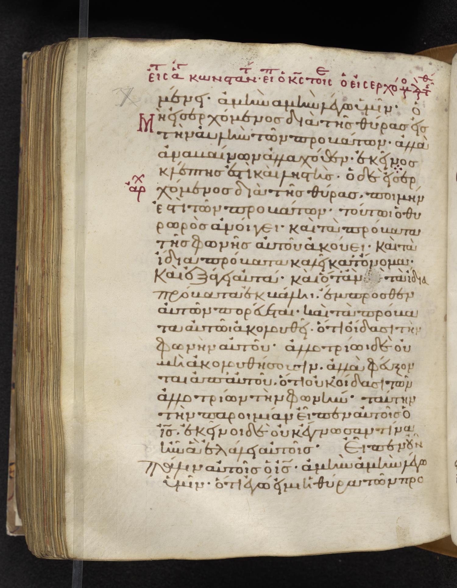 Eleventh-century minuscule of the Gospels on parchment; 310 leaves, 1 column, 22–24 lines per column. Images were taken at the Lambeth Palace Library.