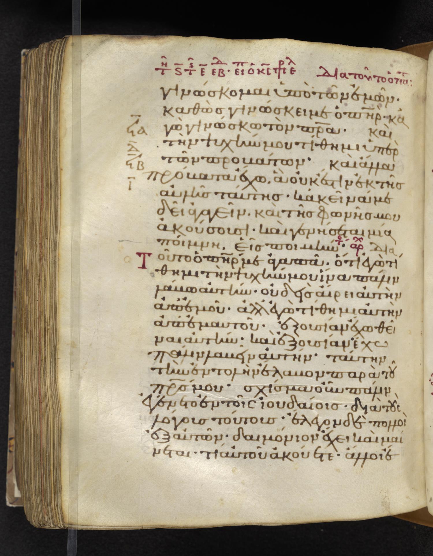 Eleventh-century minuscule of the Gospels on parchment; 310 leaves, 1 column, 22–24 lines per column. Images were taken at the Lambeth Palace Library.