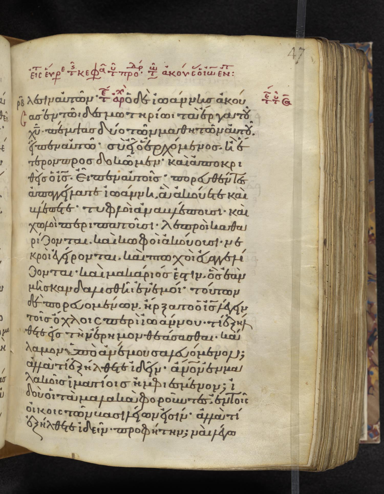 Ὁ δὲ Ἰωάνης / Ἰωάννης ἀκούσας ἐν τῷ δεσμωτηρίῳ τὰ ἔργα τοῦ χριστοῦ πέμψας διὰ τῶν μαθητῶν αὐτοῦ