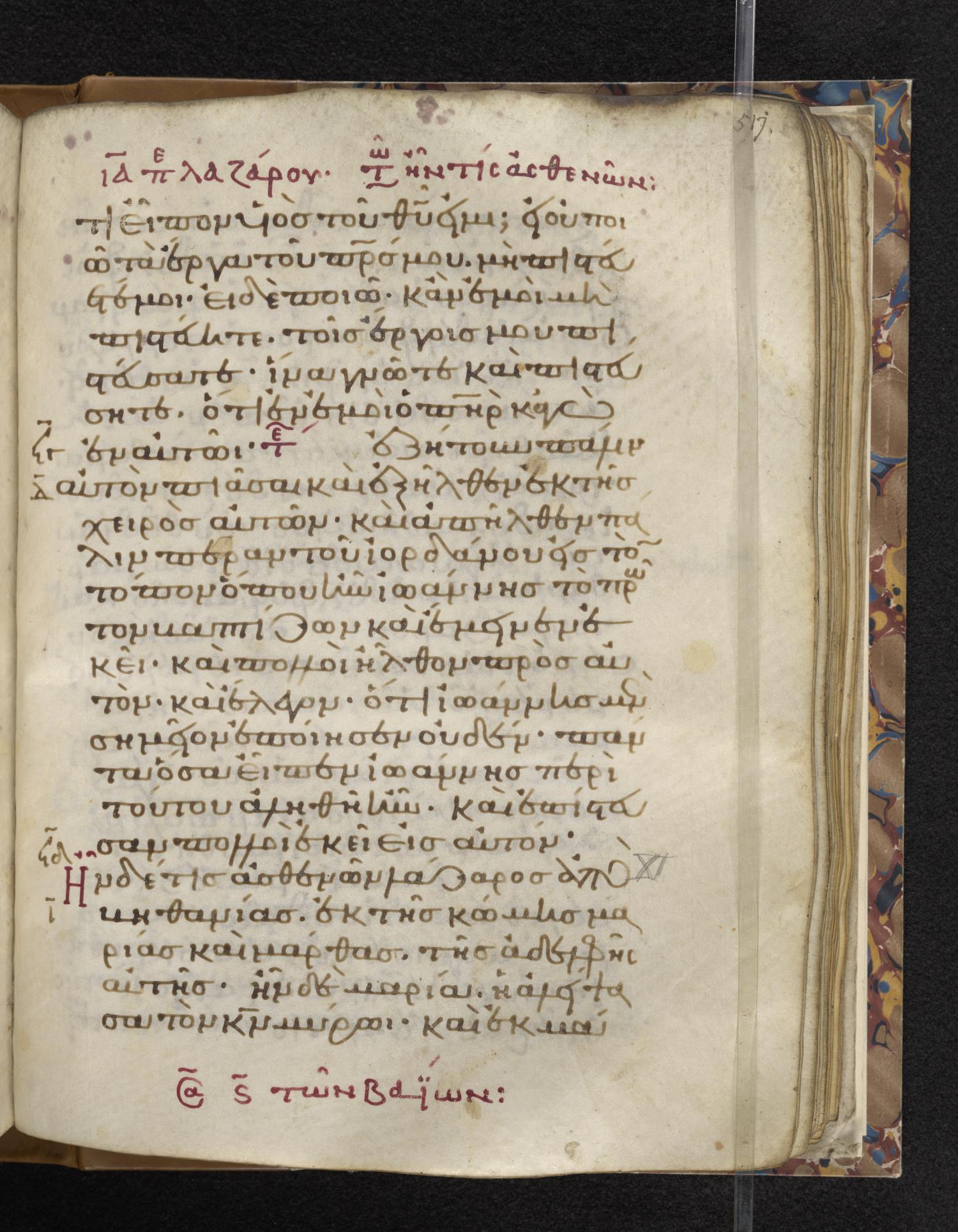 Ἦν δέ τις ἀσθενῶν, Λάζαρος ἀπὸ Βηθανίας ἐκ τῆς κώμης Μαρίας καὶ Μάρθας τῆς ἀδελφῆς αὐτῆς.