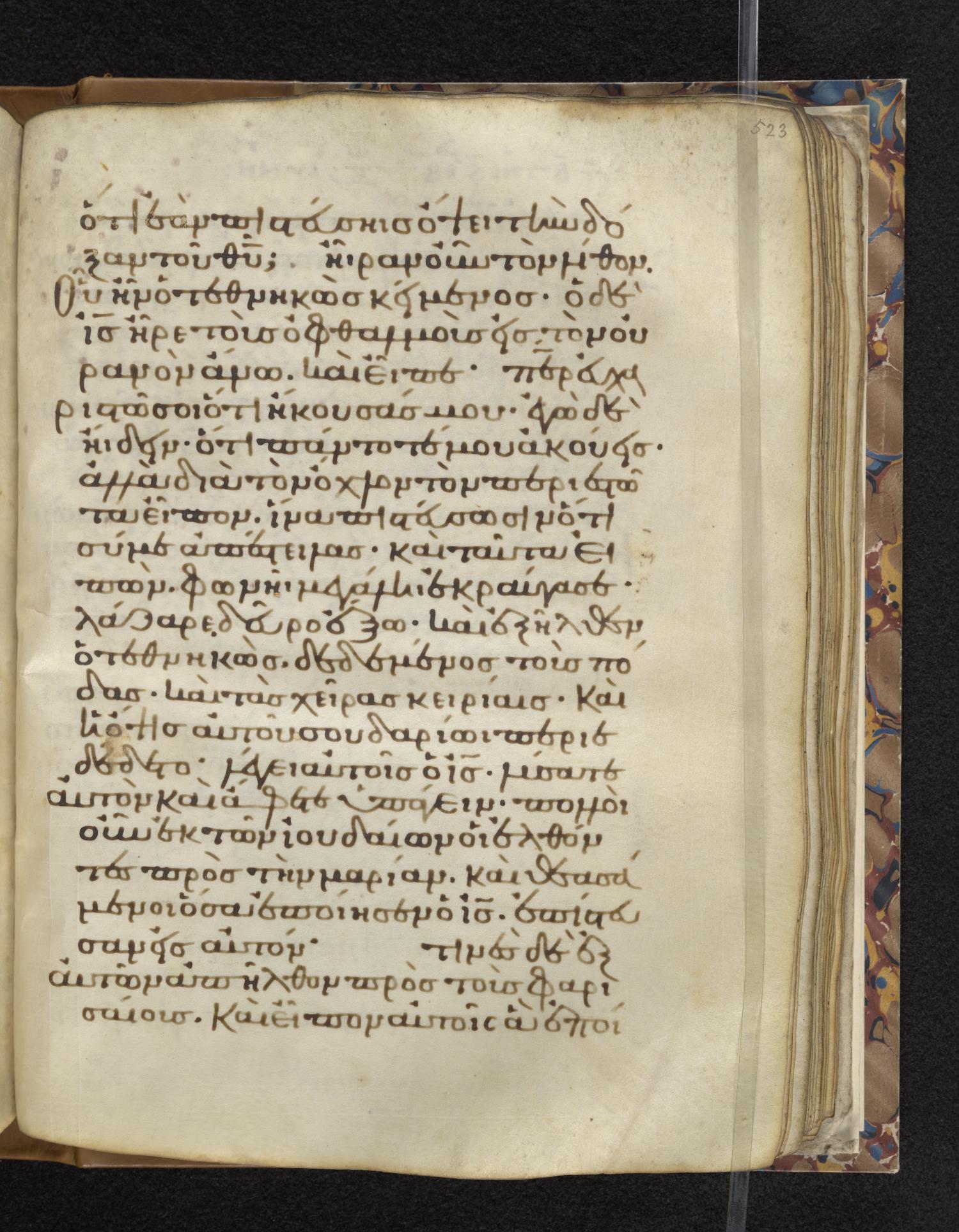 Eleventh-century minuscule of the Gospels on parchment; 310 leaves, 1 column, 22–24 lines per column. Images were taken at the Lambeth Palace Library.
