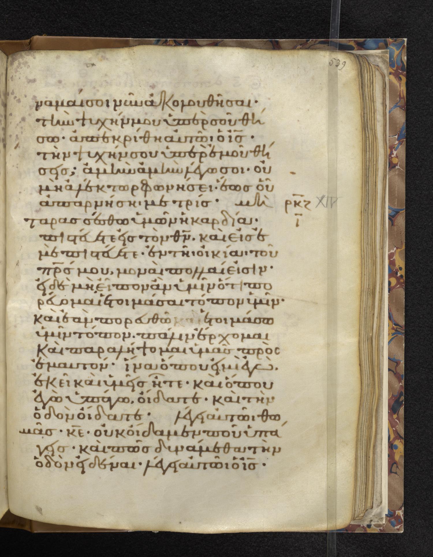 Eleventh-century minuscule of the Gospels on parchment; 310 leaves, 1 column, 22–24 lines per column. Images were taken at the Lambeth Palace Library.