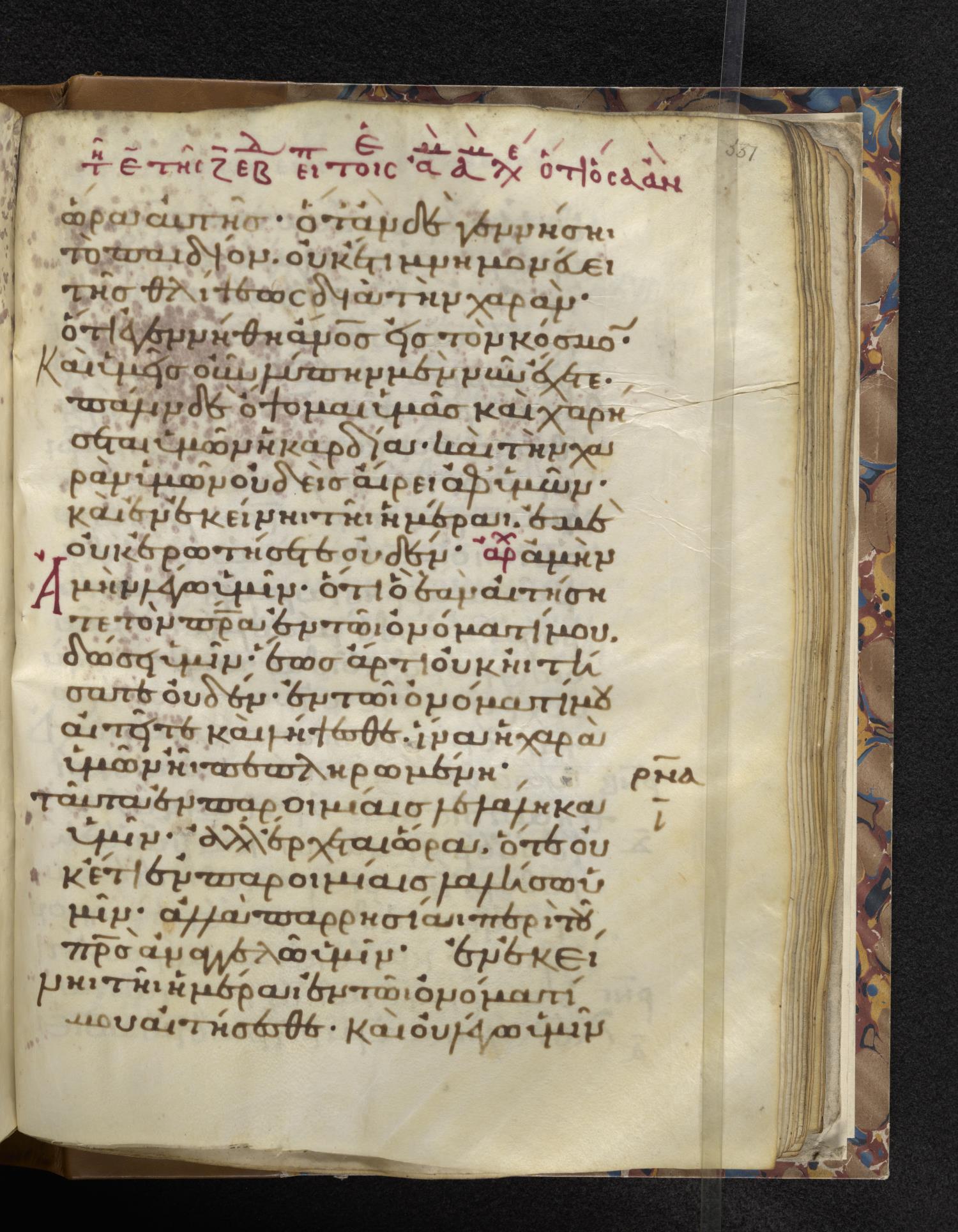Eleventh-century minuscule of the Gospels on parchment; 310 leaves, 1 column, 22–24 lines per column. Images were taken at the Lambeth Palace Library.