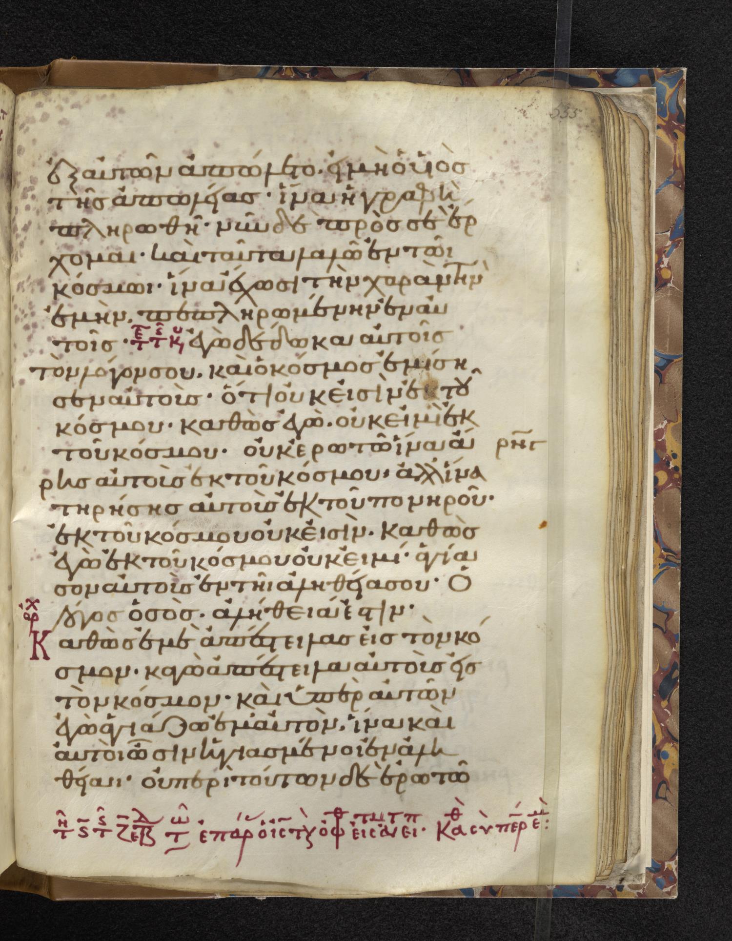 Eleventh-century minuscule of the Gospels on parchment; 310 leaves, 1 column, 22–24 lines per column. Images were taken at the Lambeth Palace Library.