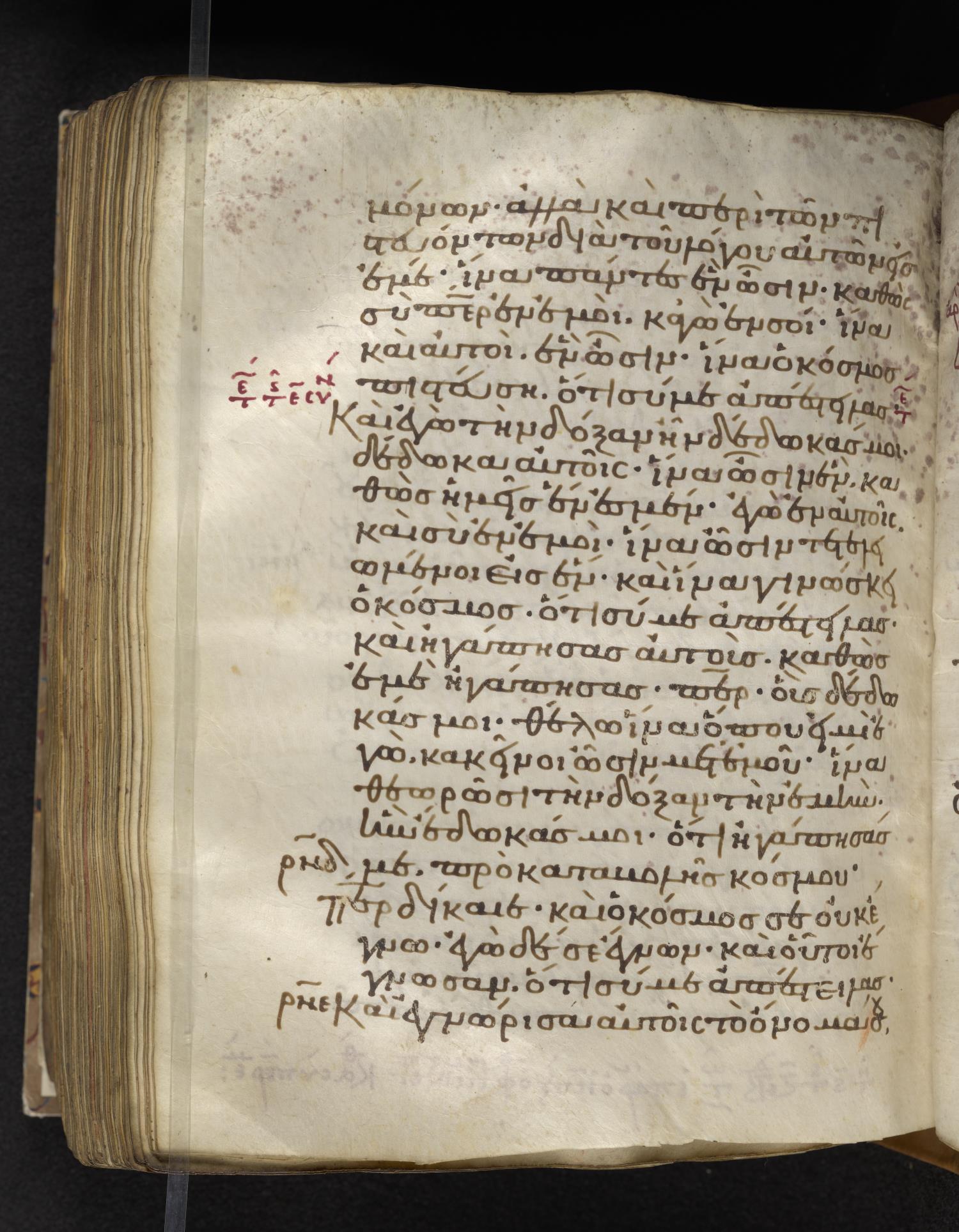 Eleventh-century minuscule of the Gospels on parchment; 310 leaves, 1 column, 22–24 lines per column. Images were taken at the Lambeth Palace Library.