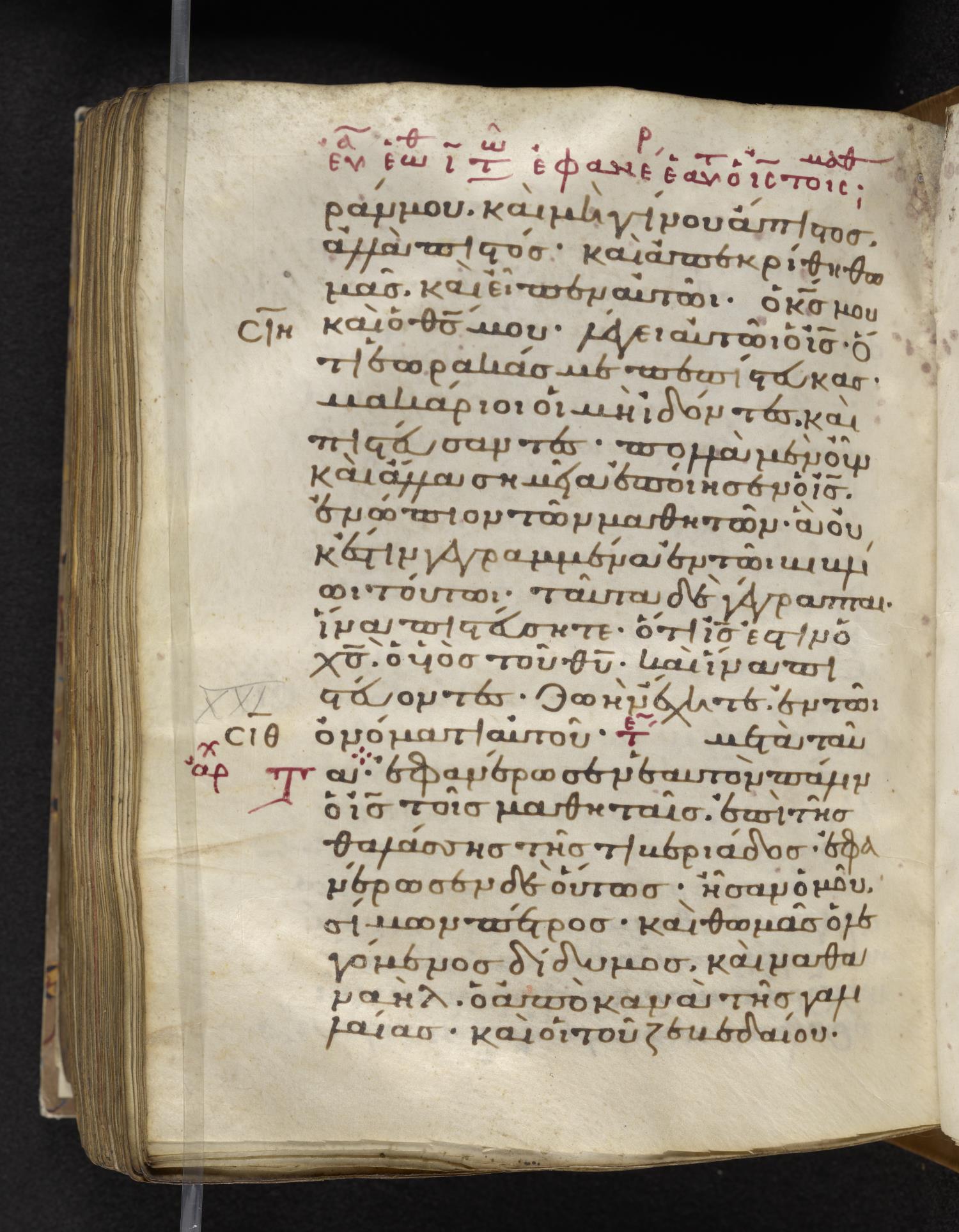 Eleventh-century minuscule of the Gospels on parchment; 310 leaves, 1 column, 22–24 lines per column. Images were taken at the Lambeth Palace Library.
