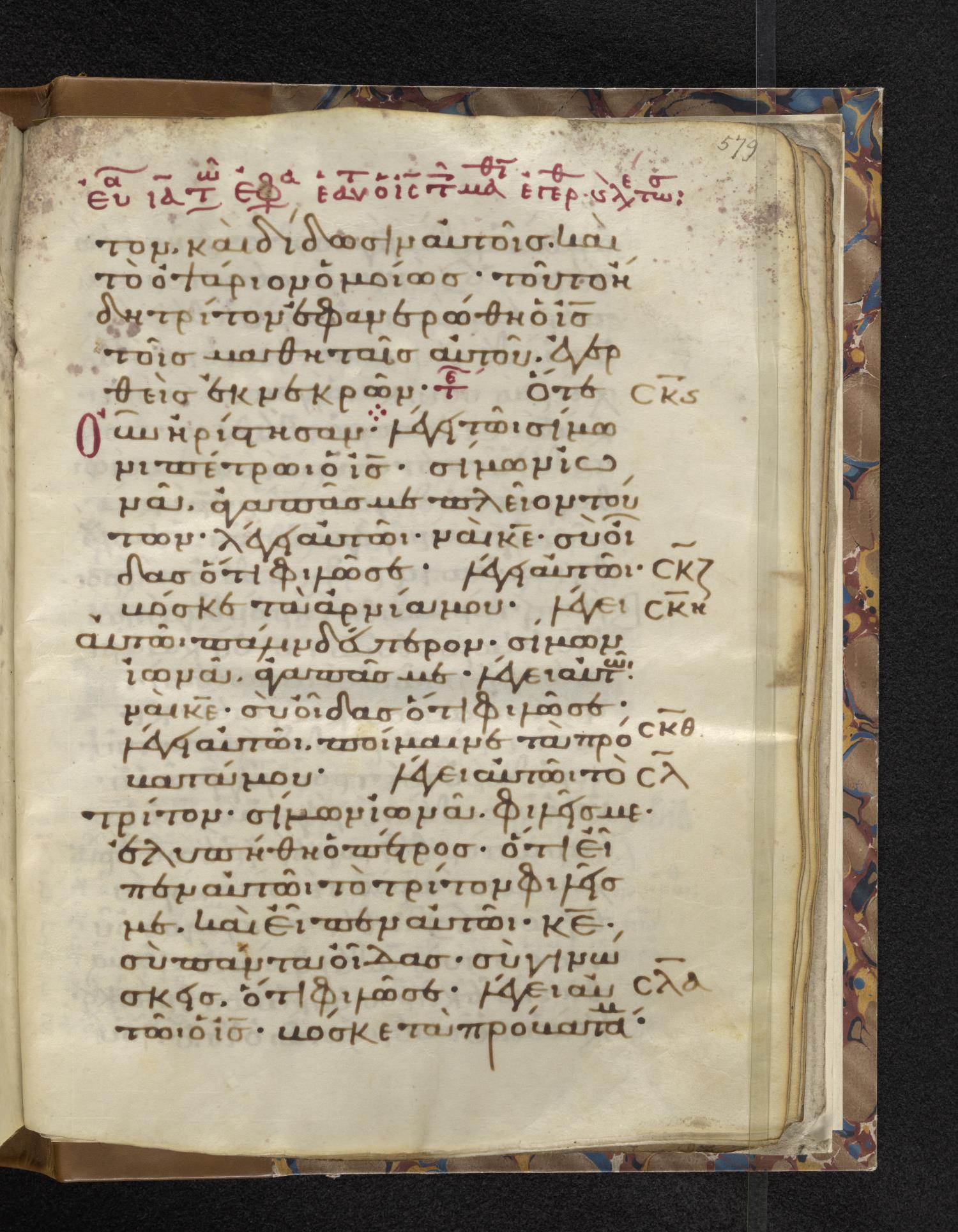 Eleventh-century minuscule of the Gospels on parchment; 310 leaves, 1 column, 22–24 lines per column. Images were taken at the Lambeth Palace Library.