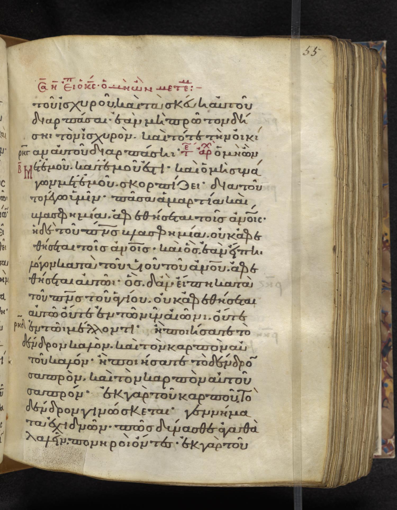 Eleventh-century minuscule of the Gospels on parchment; 310 leaves, 1 column, 22–24 lines per column. Images were taken at the Lambeth Palace Library.