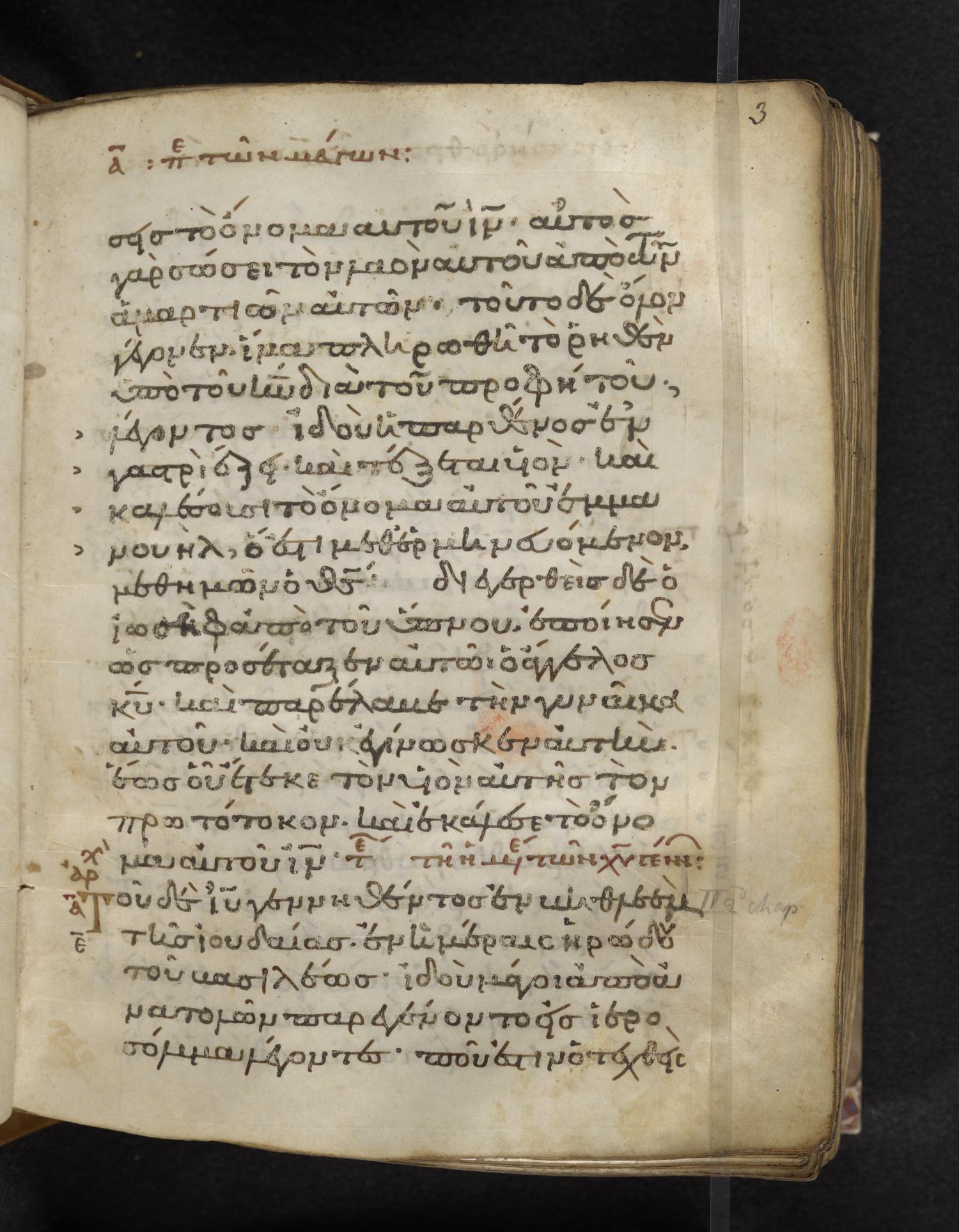 Eleventh-century minuscule of the Gospels on parchment; 310 leaves, 1 column, 22–24 lines per column. Images were taken at the Lambeth Palace Library.