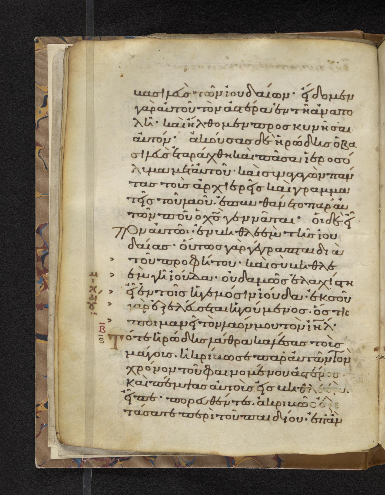 Eleventh-century minuscule of the Gospels on parchment; 310 leaves, 1 column, 22–24 lines per column. Images were taken at the Lambeth Palace Library.
