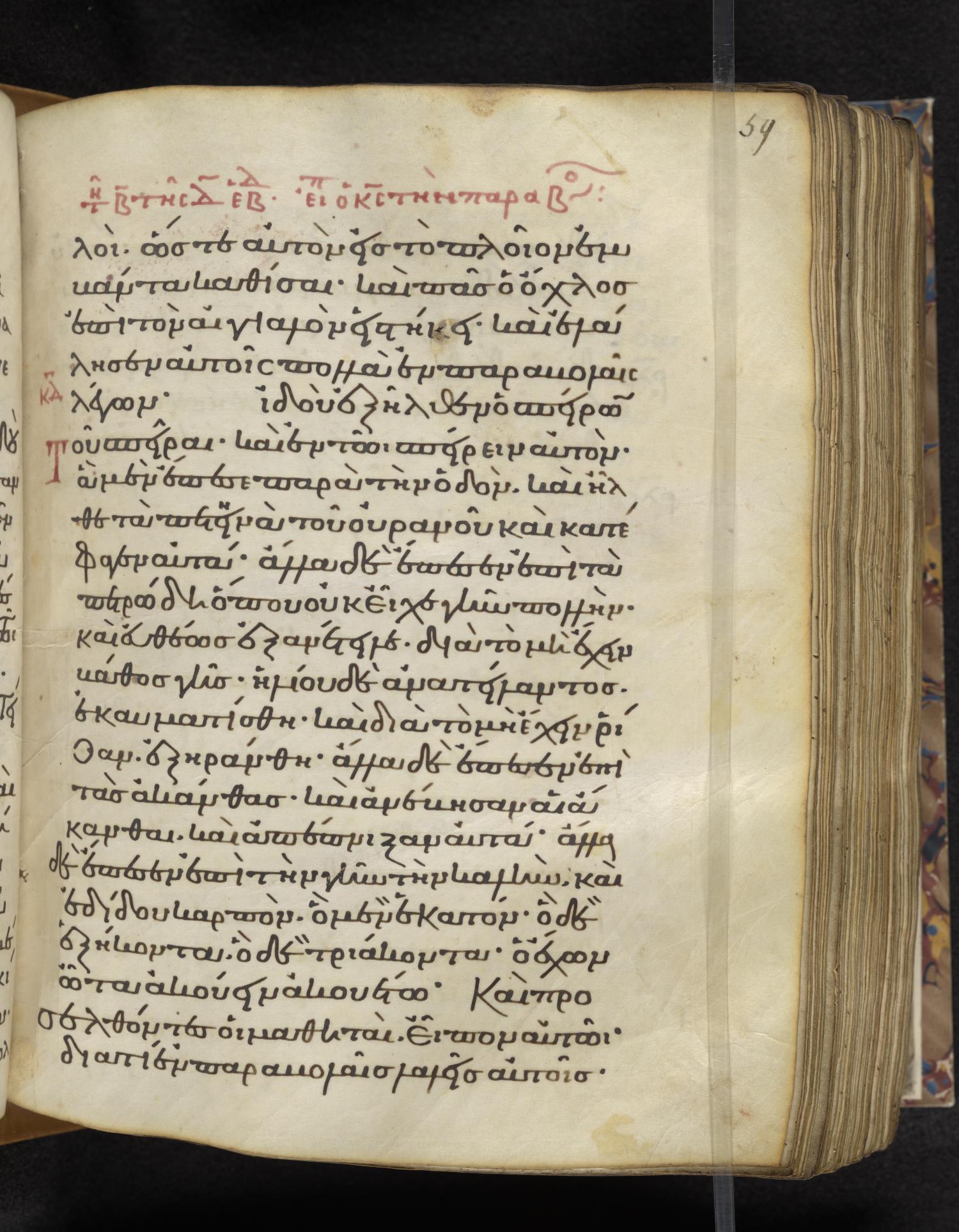 Eleventh-century minuscule of the Gospels on parchment; 310 leaves, 1 column, 22–24 lines per column. Images were taken at the Lambeth Palace Library.