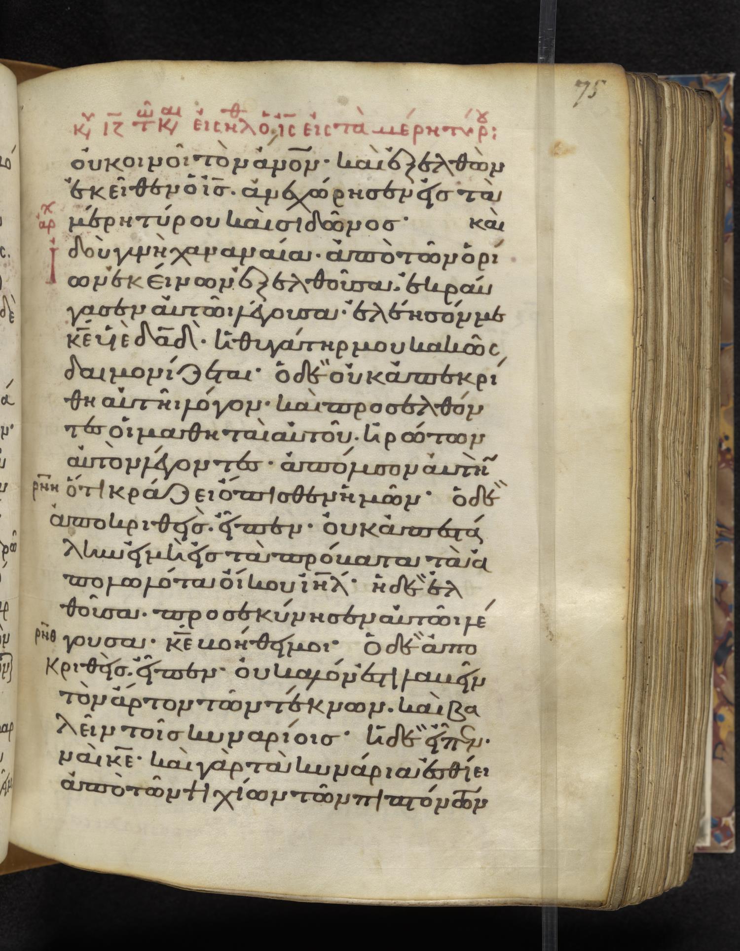 Eleventh-century minuscule of the Gospels on parchment; 310 leaves, 1 column, 22–24 lines per column. Images were taken at the Lambeth Palace Library.