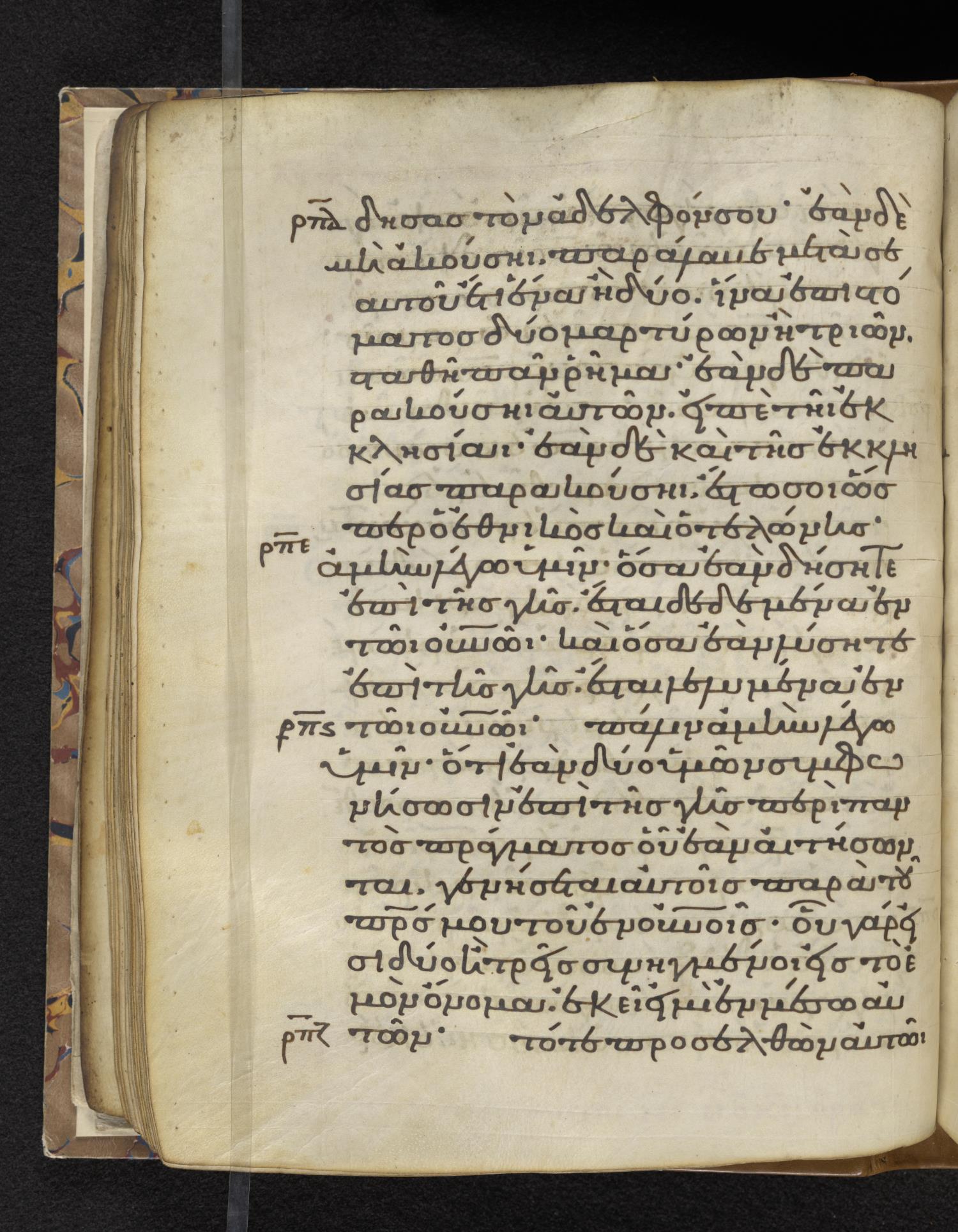 Eleventh-century minuscule of the Gospels on parchment; 310 leaves, 1 column, 22–24 lines per column. Images were taken at the Lambeth Palace Library.