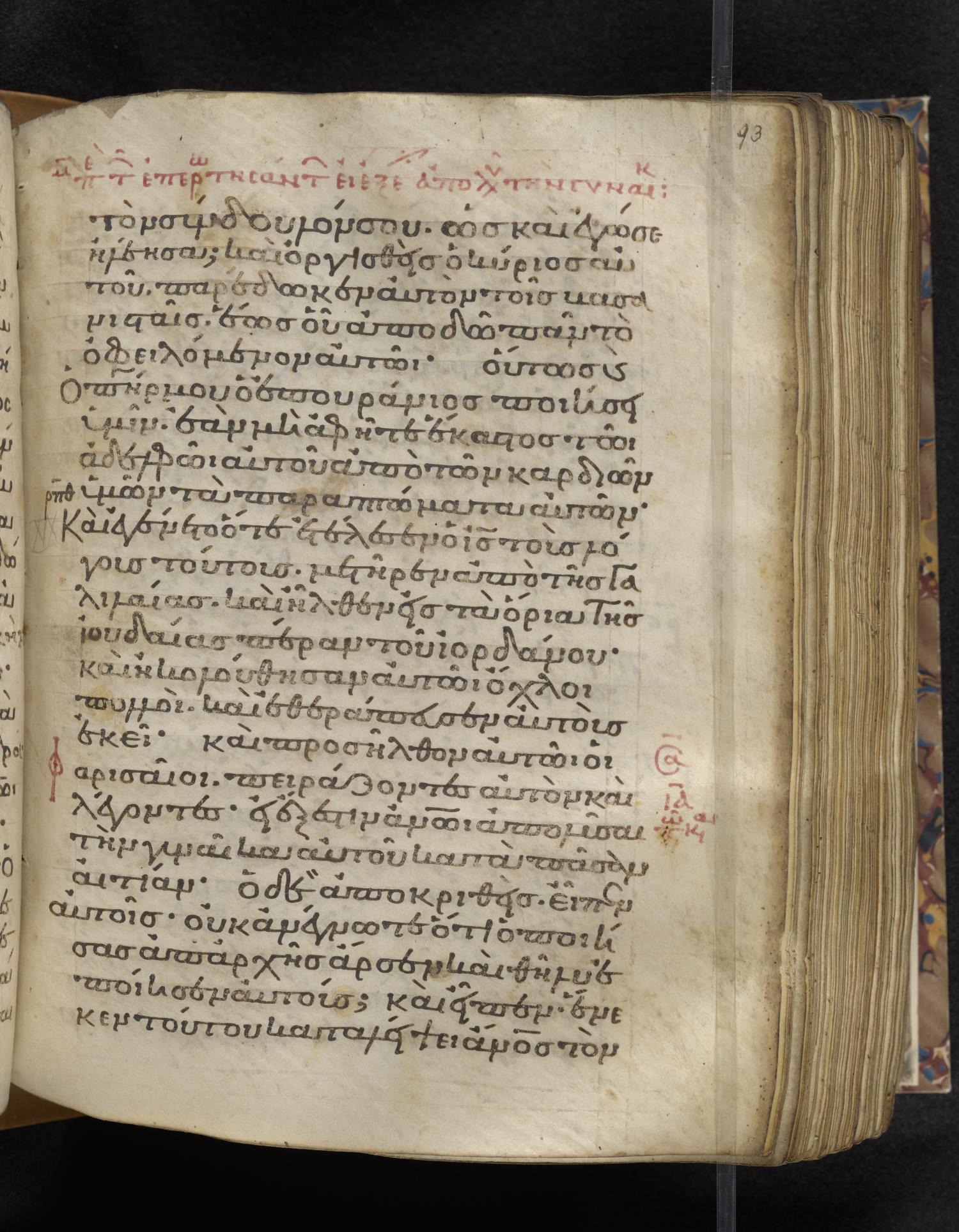 Eleventh-century minuscule of the Gospels on parchment; 310 leaves, 1 column, 22–24 lines per column. Images were taken at the Lambeth Palace Library.