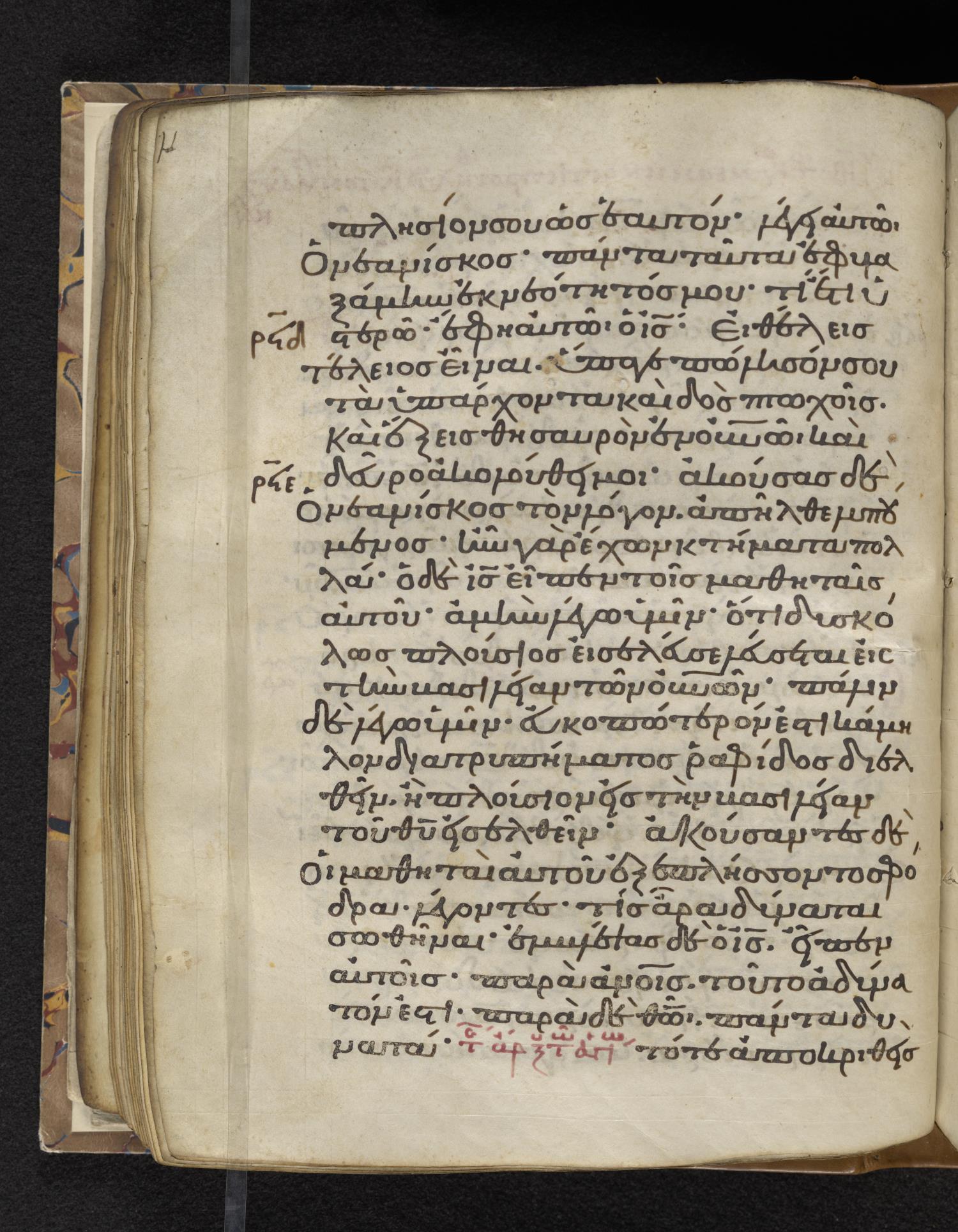 Eleventh-century minuscule of the Gospels on parchment; 310 leaves, 1 column, 22–24 lines per column. Images were taken at the Lambeth Palace Library.