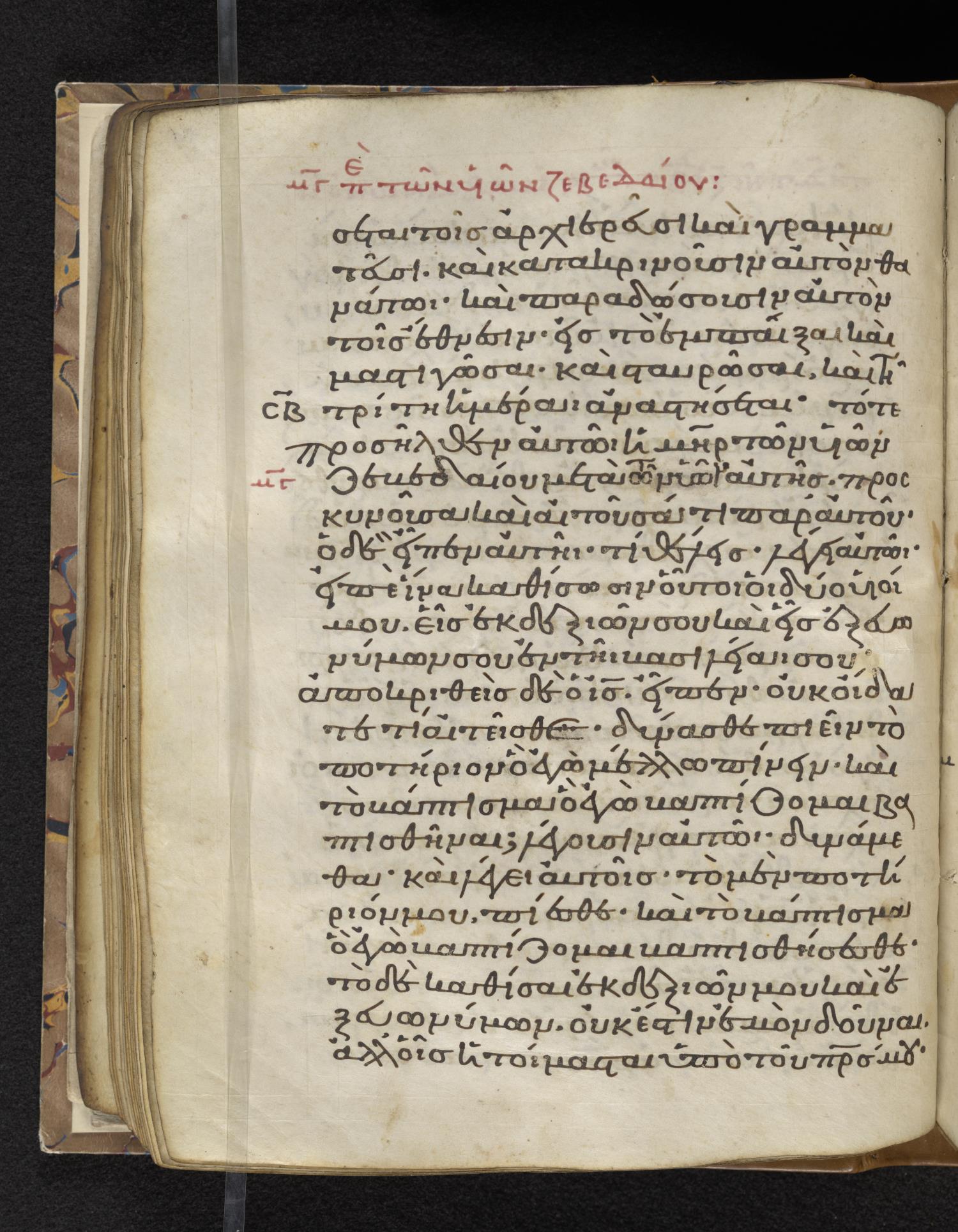 Eleventh-century minuscule of the Gospels on parchment; 310 leaves, 1 column, 22–24 lines per column. Images were taken at the Lambeth Palace Library.
