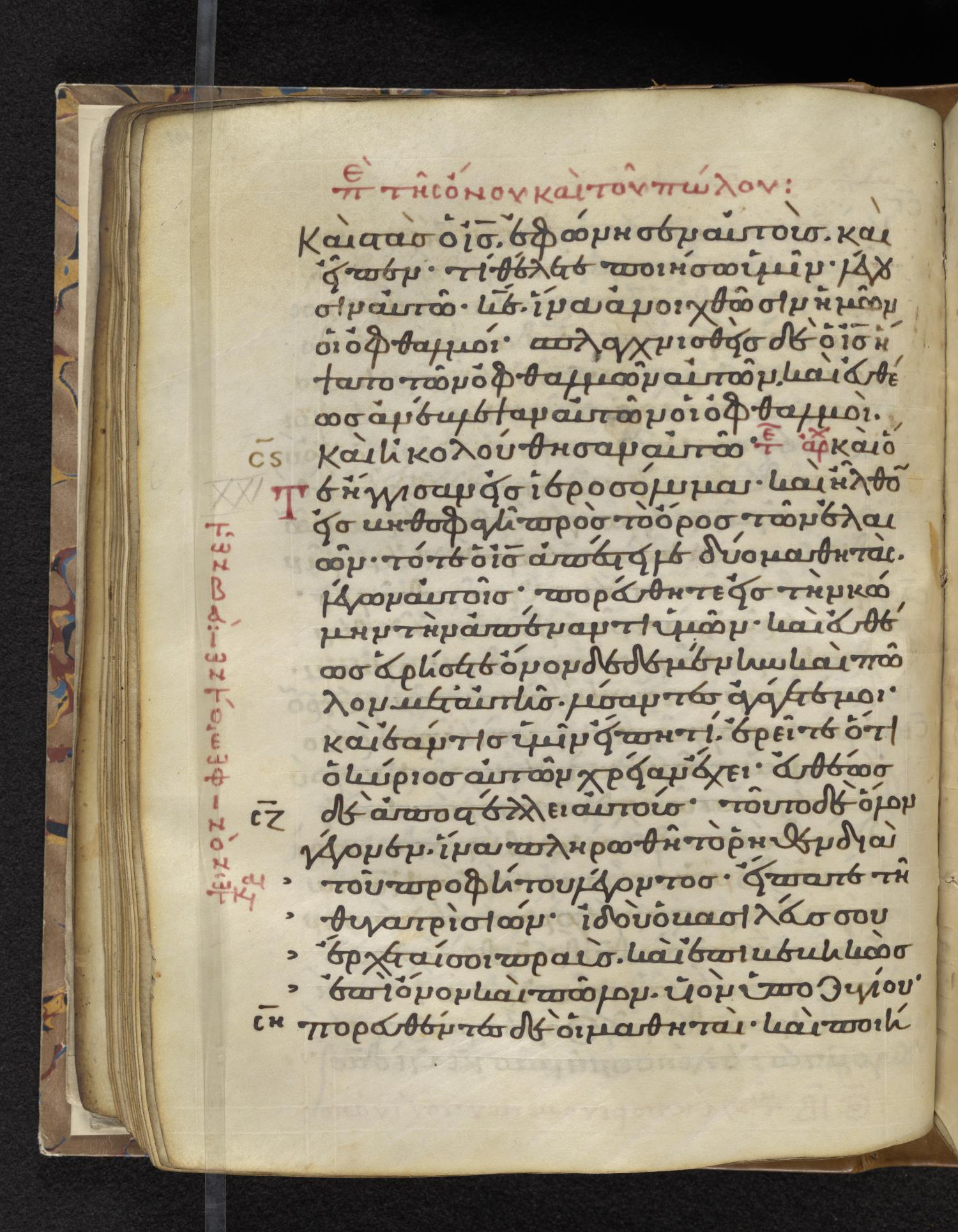 Eleventh-century minuscule of the Gospels on parchment; 310 leaves, 1 column, 22–24 lines per column. Images were taken at the Lambeth Palace Library.