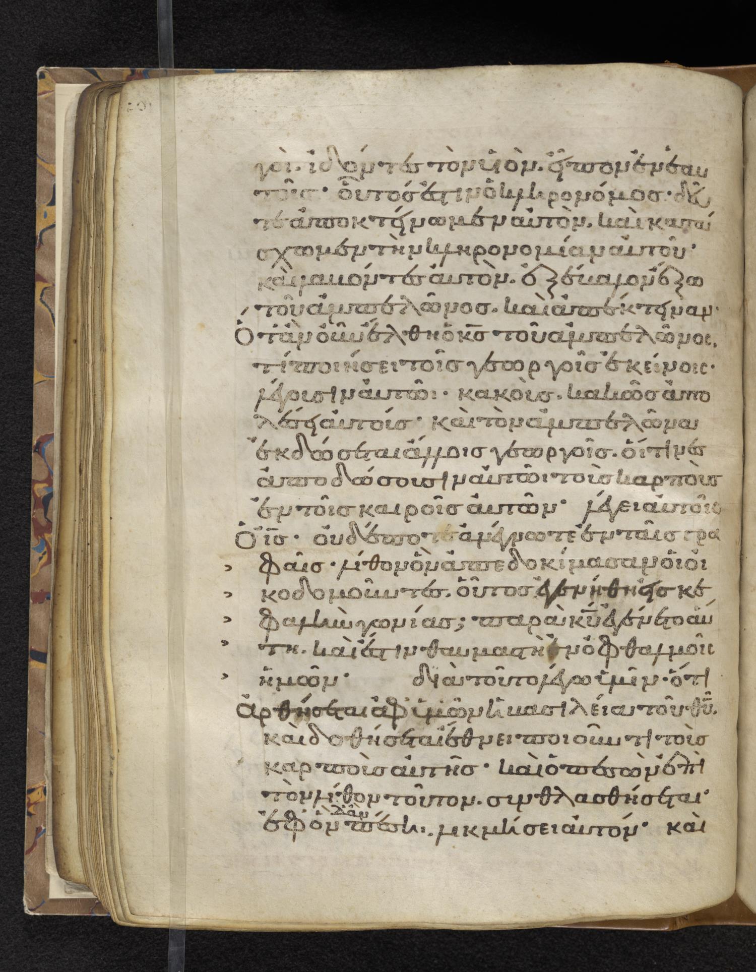 Eleventh-century minuscule of the Gospels on parchment; 310 leaves, 1 column, 22–24 lines per column. Images were taken at the Lambeth Palace Library.