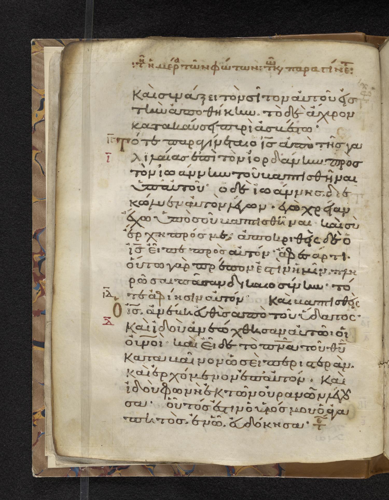 Eleventh-century minuscule of the Gospels on parchment; 310 leaves, 1 column, 22–24 lines per column. Images were taken at the Lambeth Palace Library.
