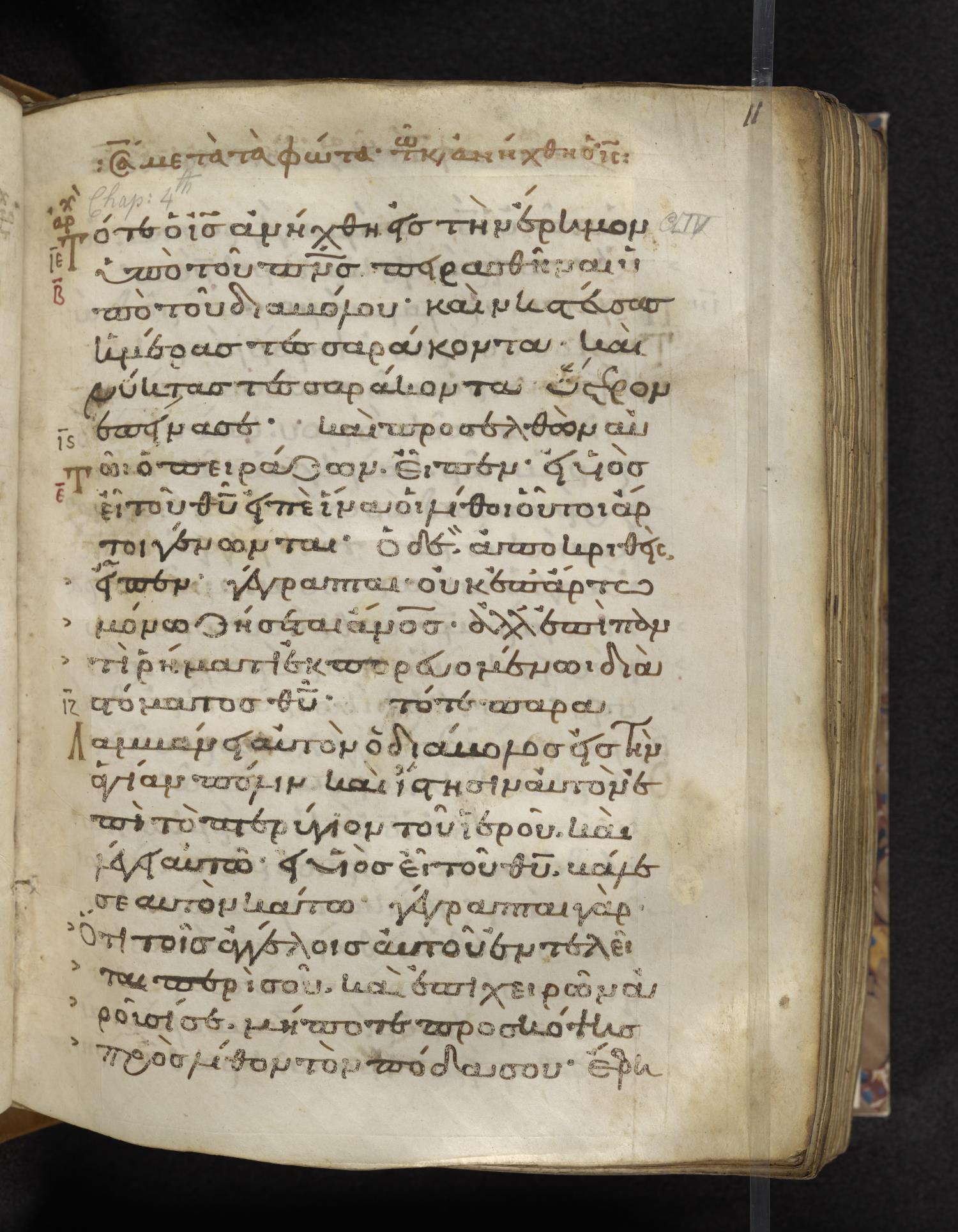 Eleventh-century minuscule of the Gospels on parchment; 310 leaves, 1 column, 22–24 lines per column. Images were taken at the Lambeth Palace Library.