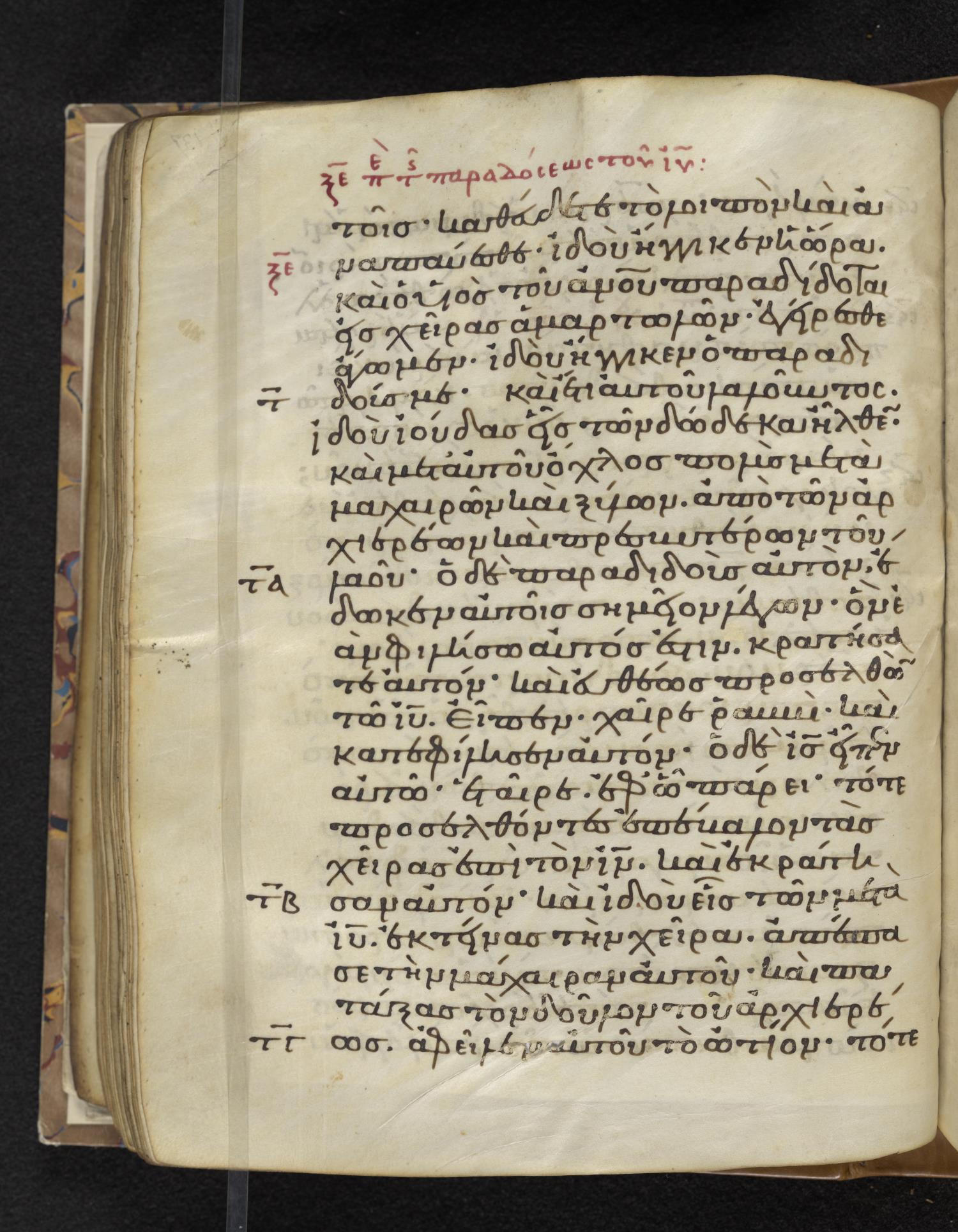 Eleventh-century minuscule of the Gospels on parchment; 310 leaves, 1 column, 22–24 lines per column. Images were taken at the Lambeth Palace Library.