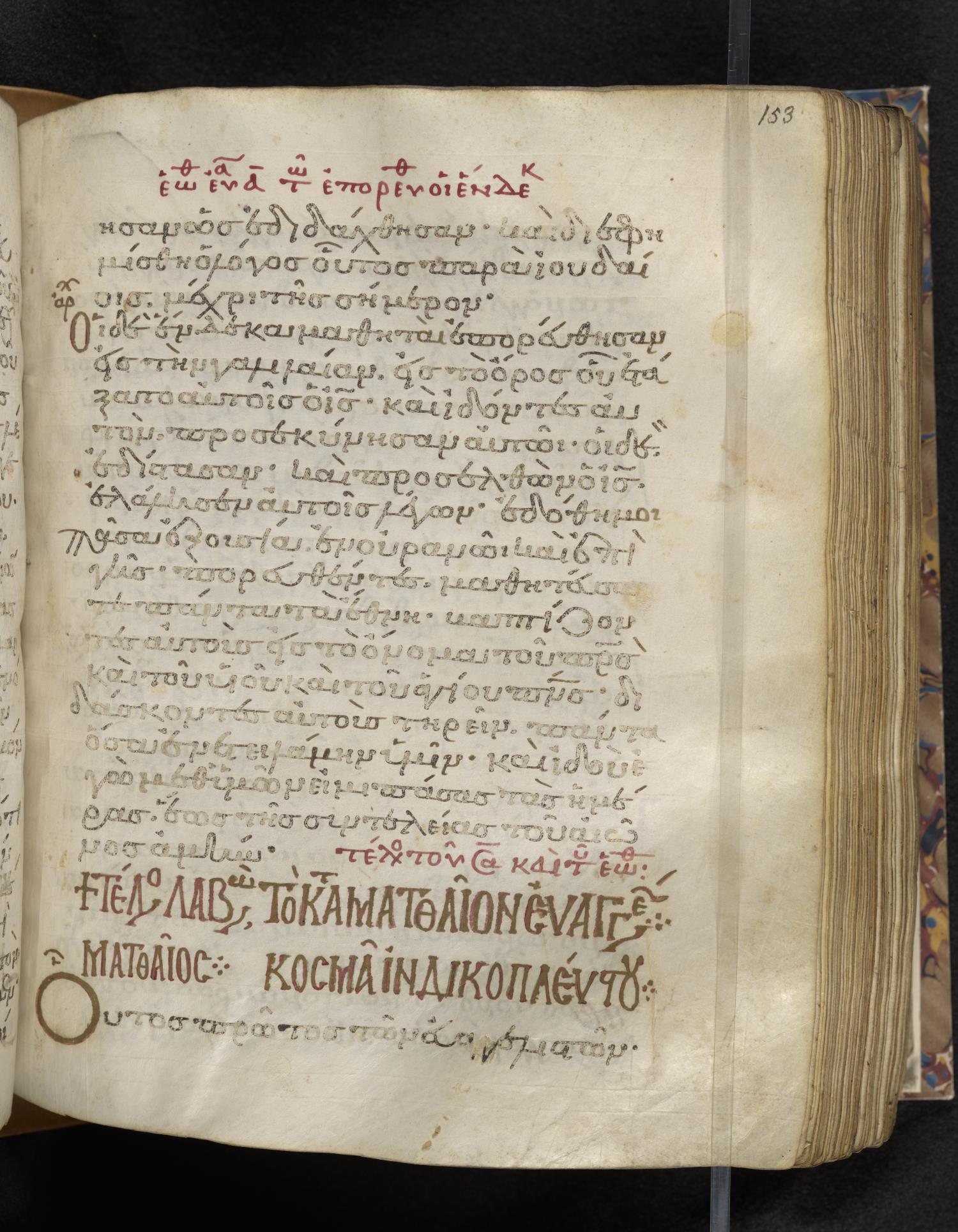 Eleventh-century minuscule of the Gospels on parchment; 310 leaves, 1 column, 22–24 lines per column. Images were taken at the Lambeth Palace Library.