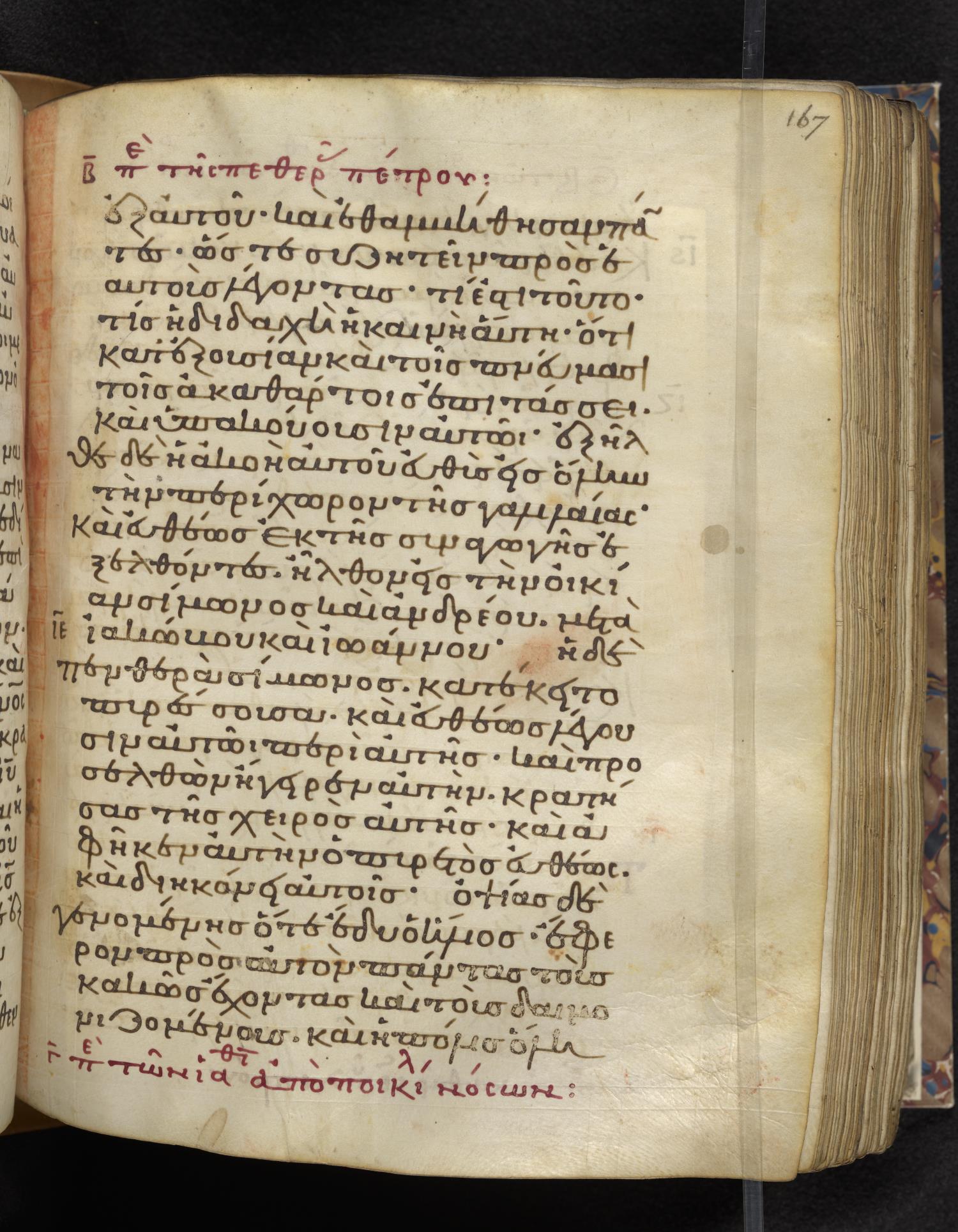 Eleventh-century minuscule of the Gospels on parchment; 310 leaves, 1 column, 22–24 lines per column. Images were taken at the Lambeth Palace Library.