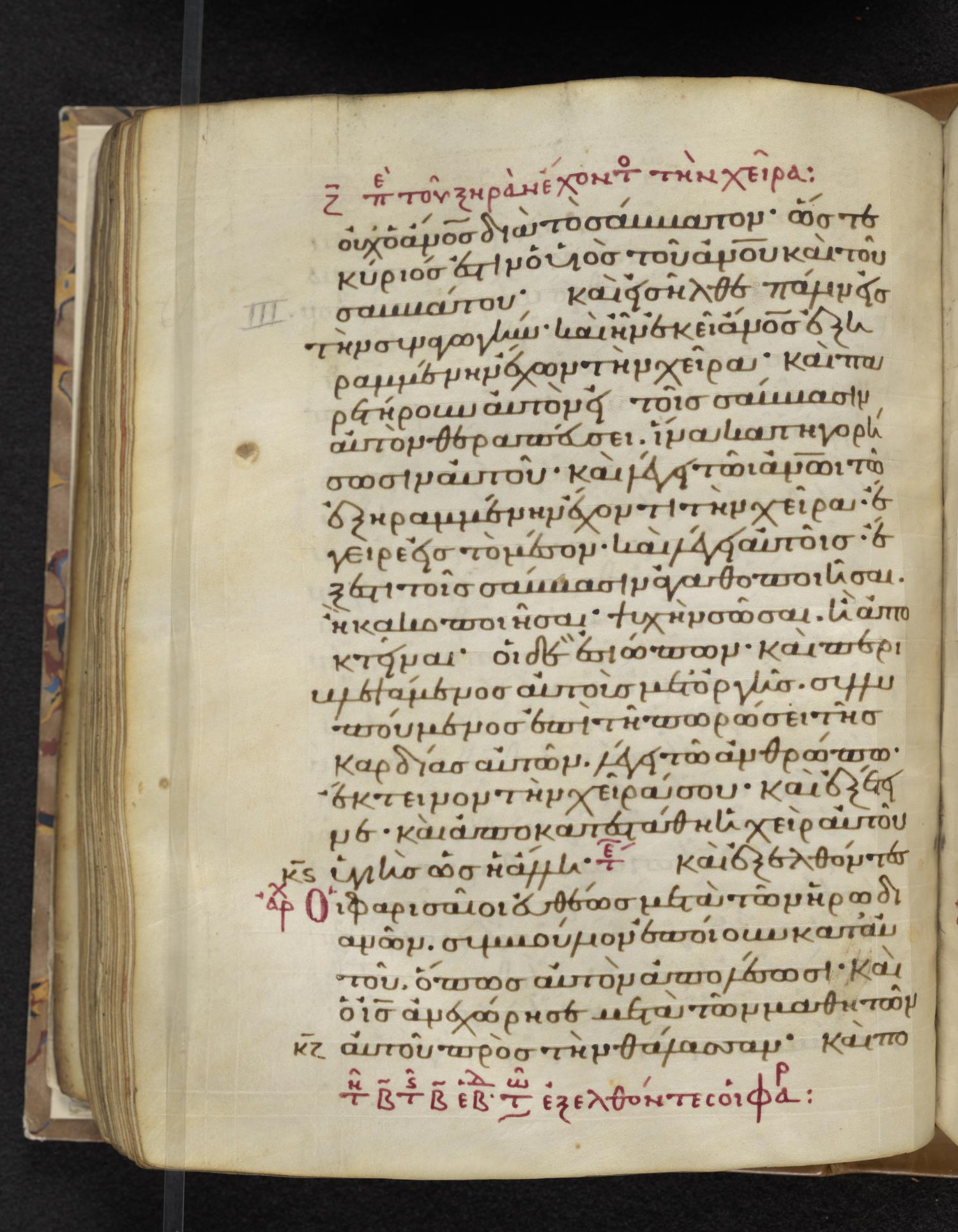 Eleventh-century minuscule of the Gospels on parchment; 310 leaves, 1 column, 22–24 lines per column. Images were taken at the Lambeth Palace Library.