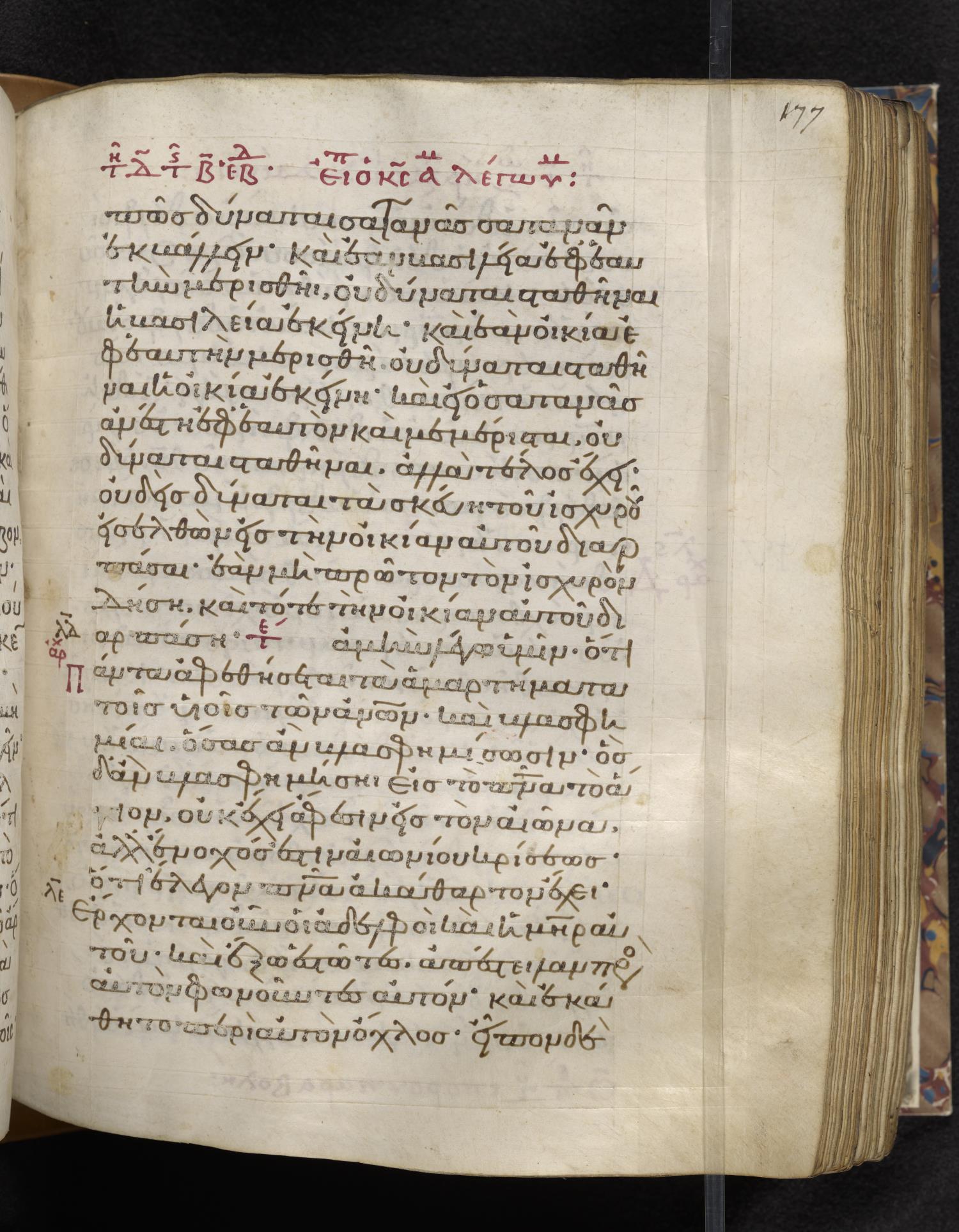 Eleventh-century minuscule of the Gospels on parchment; 310 leaves, 1 column, 22–24 lines per column. Images were taken at the Lambeth Palace Library.