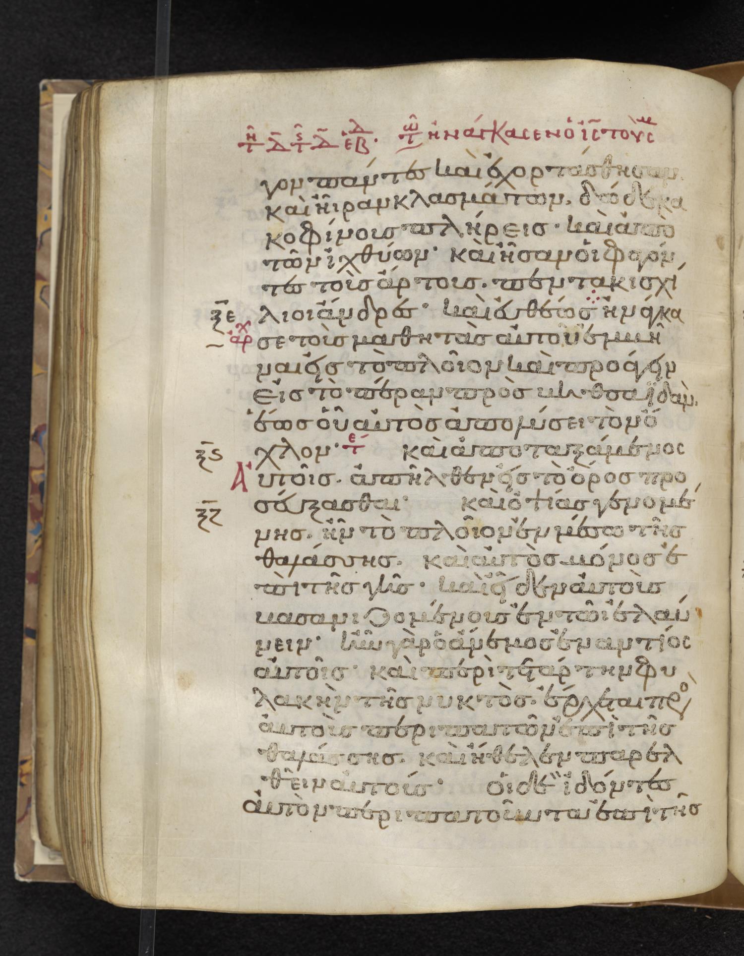 Eleventh-century minuscule of the Gospels on parchment; 310 leaves, 1 column, 22–24 lines per column. Images were taken at the Lambeth Palace Library.