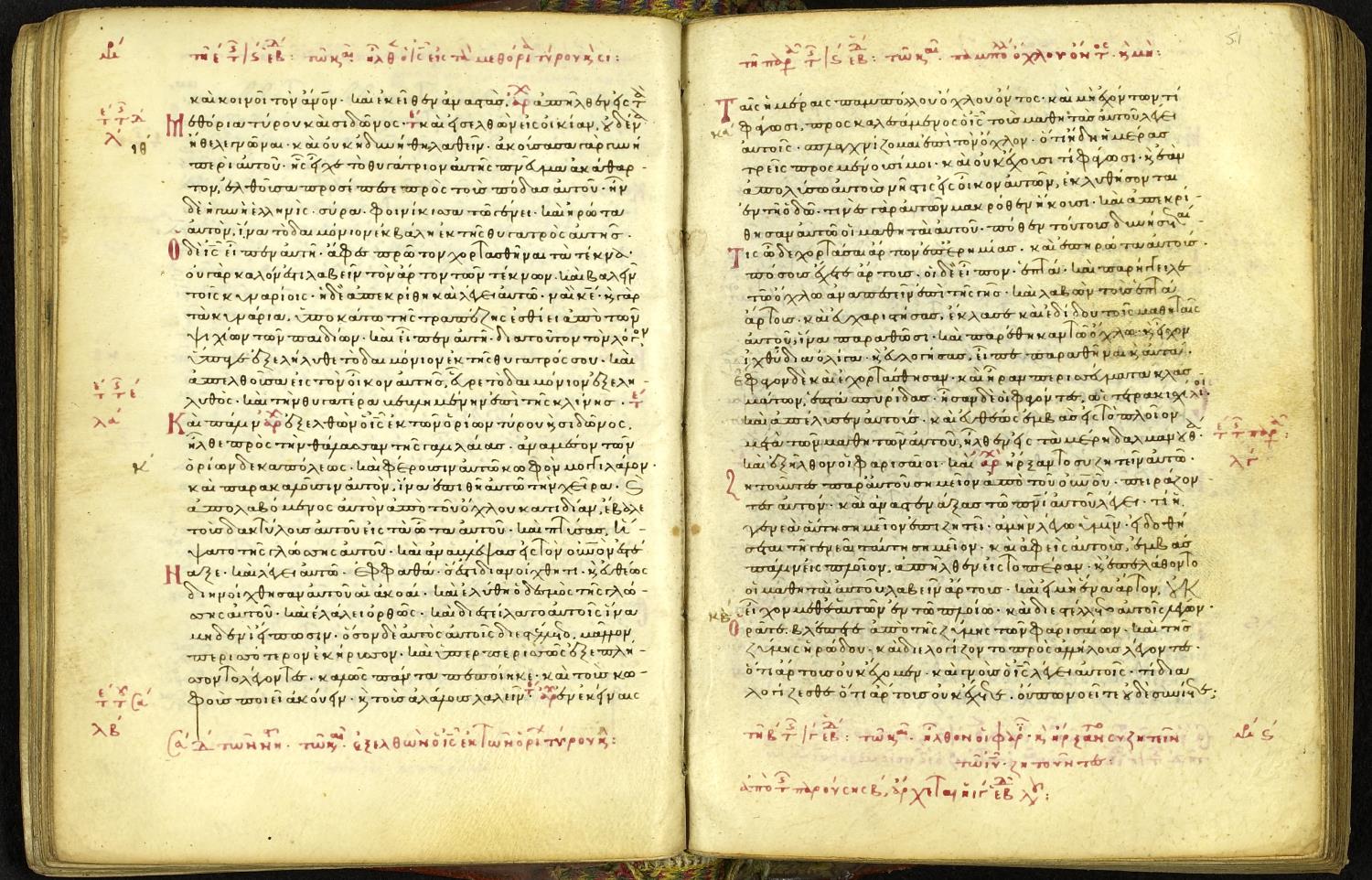 Thirteenth-century minuscule of the Gospels, Acts, and Paul on parchment; 289 leaves, 1 column, 28-29 lines per column. The images are made available by the Cadbury Research Library at Birmingham University.