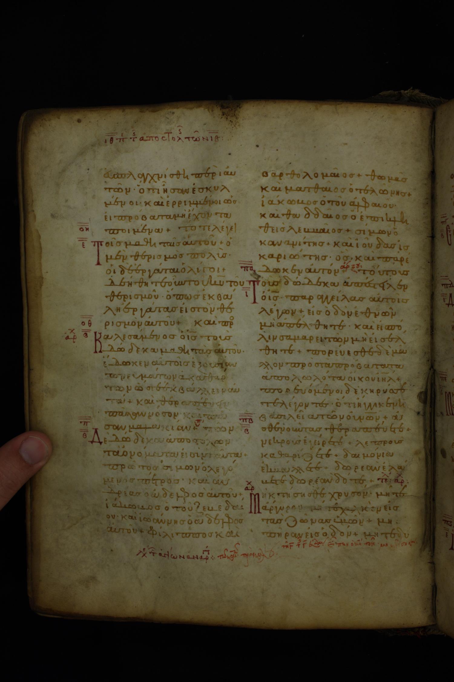 Twelfth century minuscule of the Gospels on parchment; 185 leaves, 2 columns, 26–30 lines per column.