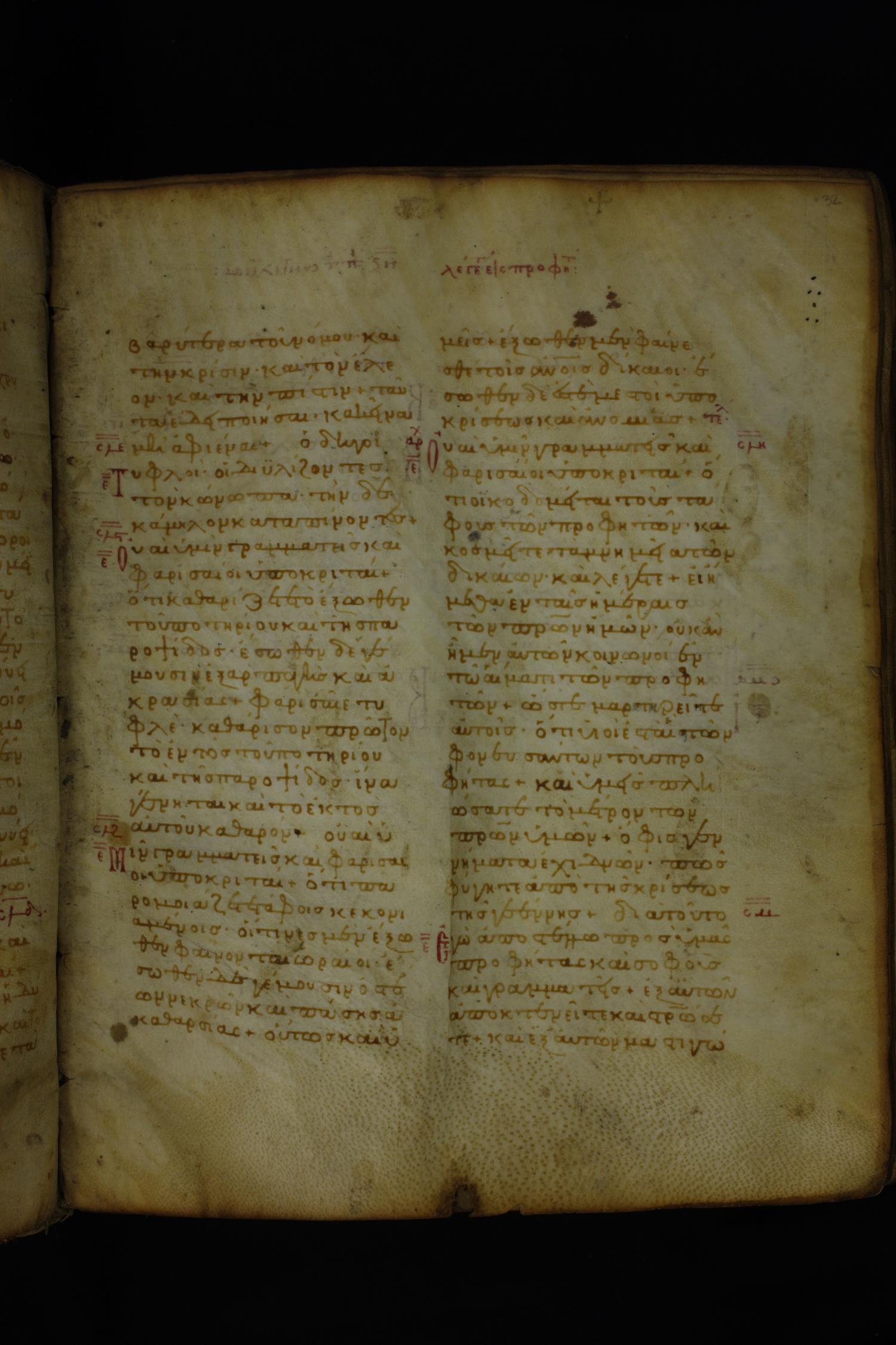 Twelfth century minuscule of the Gospels on parchment; 185 leaves, 2 columns, 26–30 lines per column.