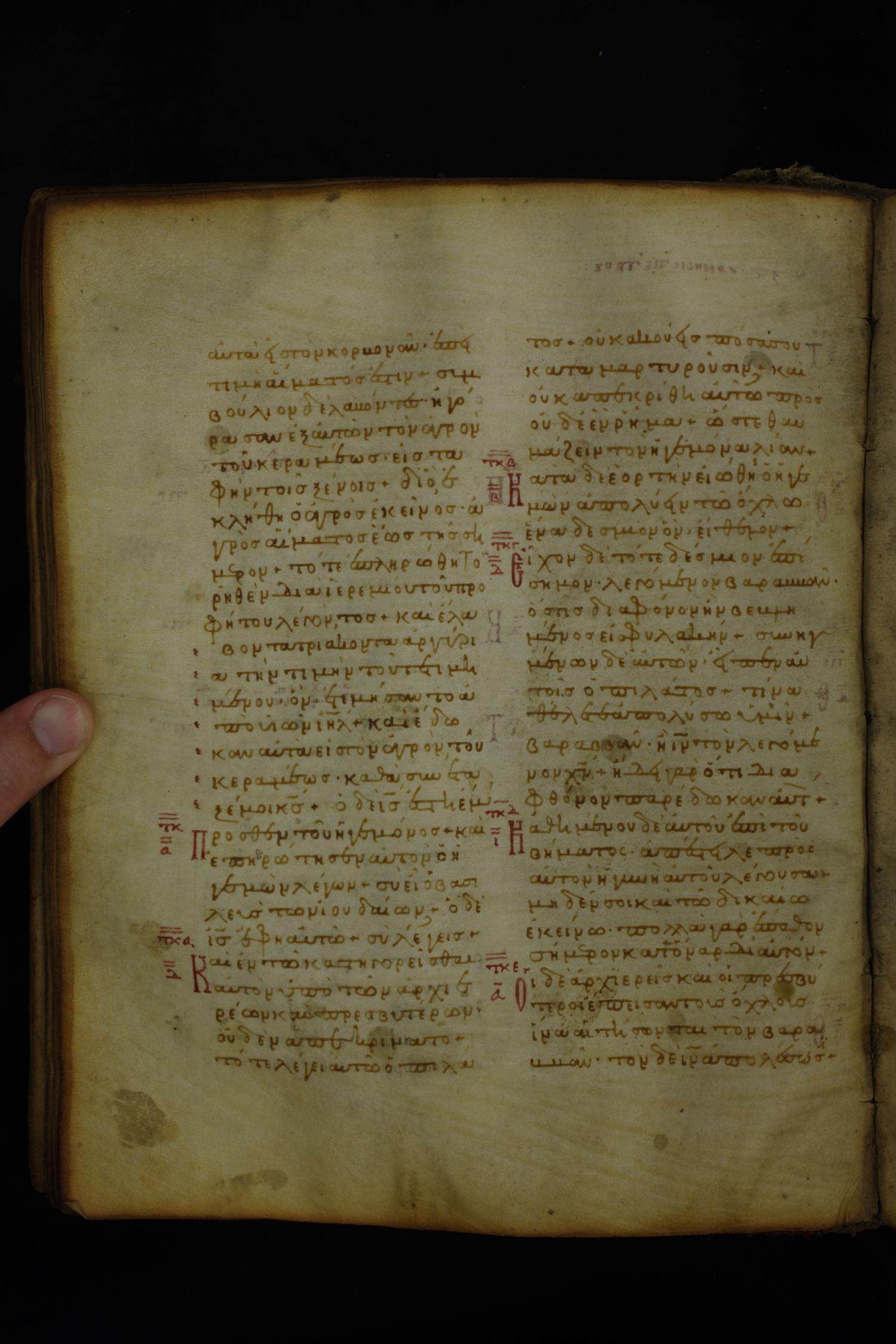 Twelfth century minuscule of the Gospels on parchment; 185 leaves, 2 columns, 26–30 lines per column.