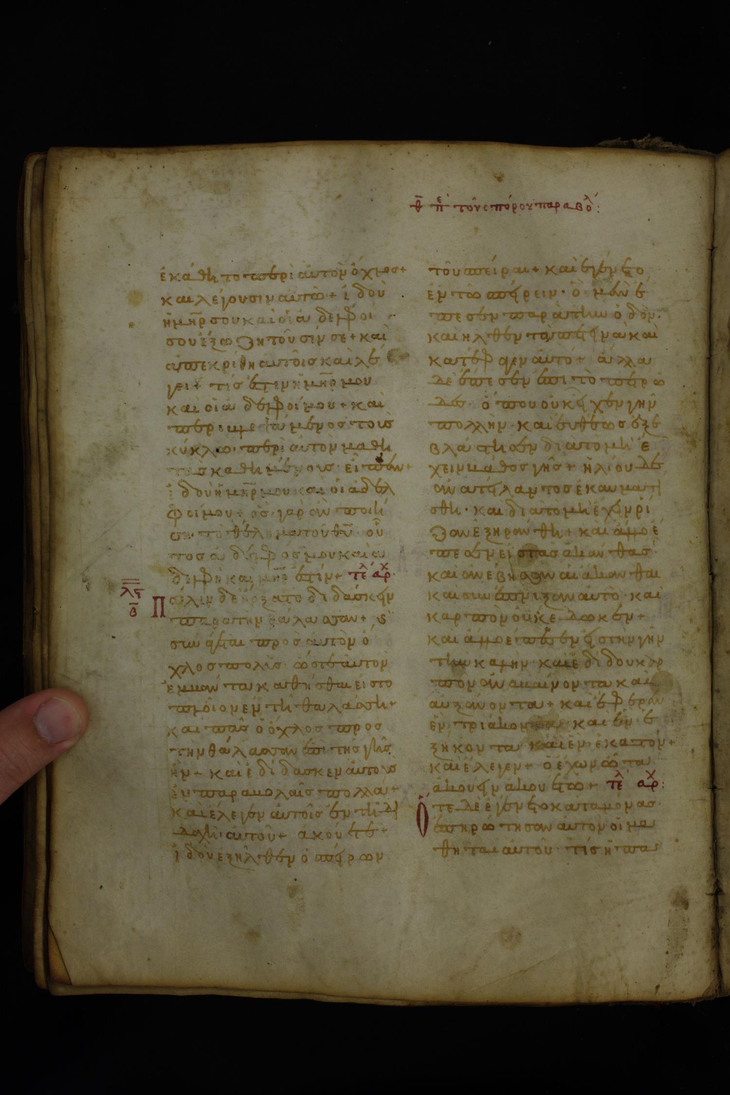 Twelfth century minuscule of the Gospels on parchment; 185 leaves, 2 columns, 26–30 lines per column.