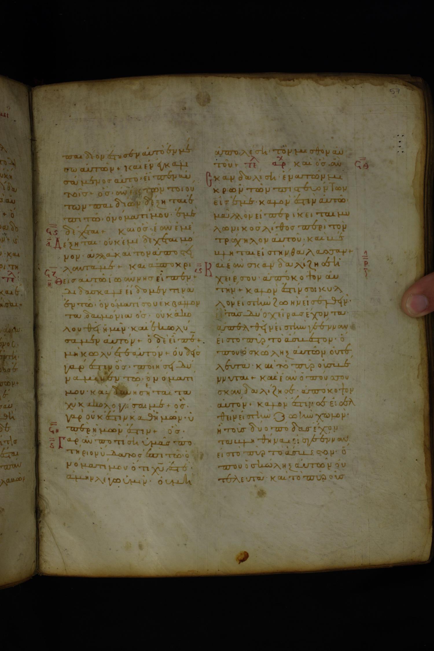 Twelfth century minuscule of the Gospels on parchment; 185 leaves, 2 columns, 26–30 lines per column.