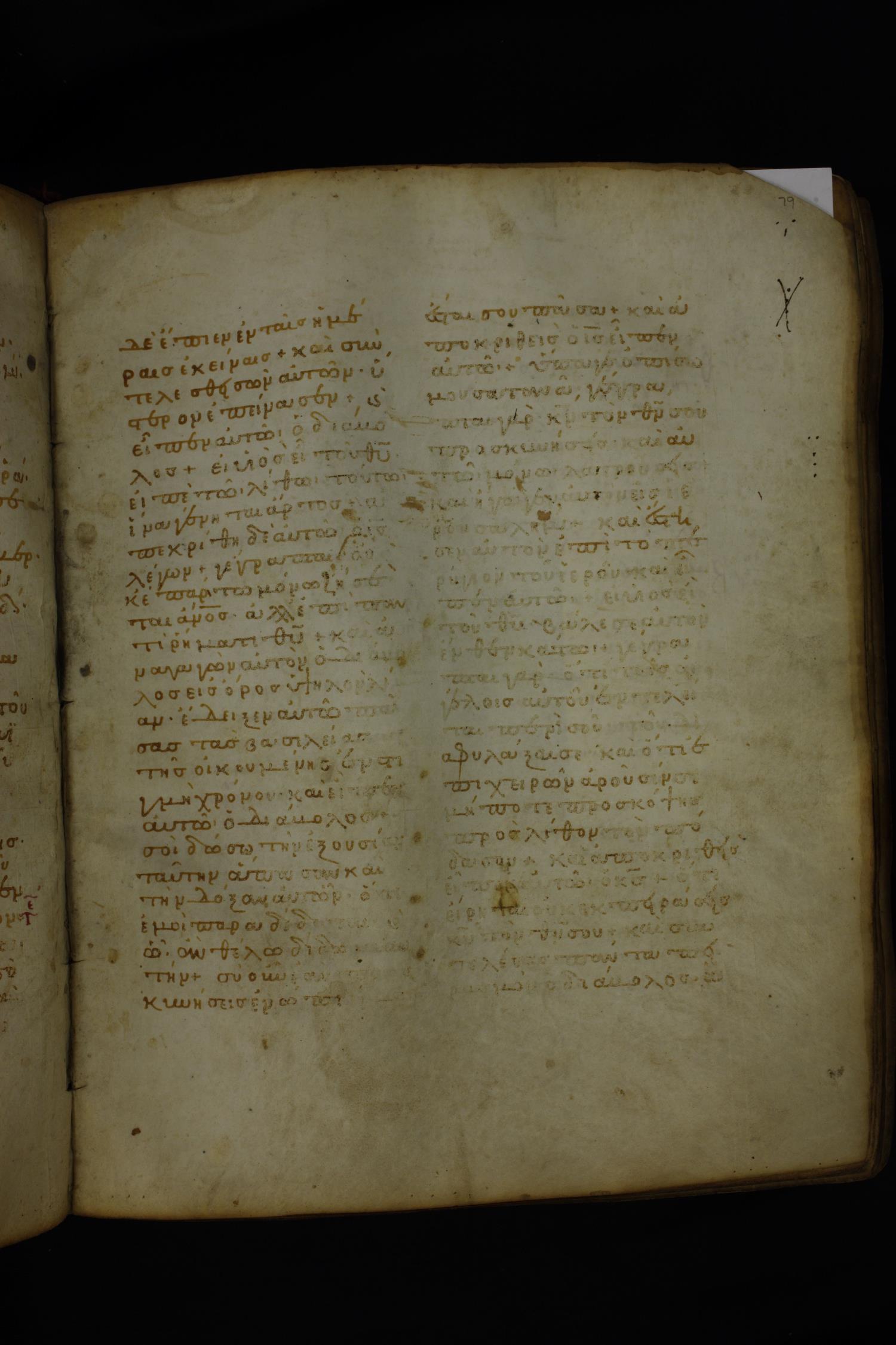 Twelfth century minuscule of the Gospels on parchment; 185 leaves, 2 columns, 26–30 lines per column.