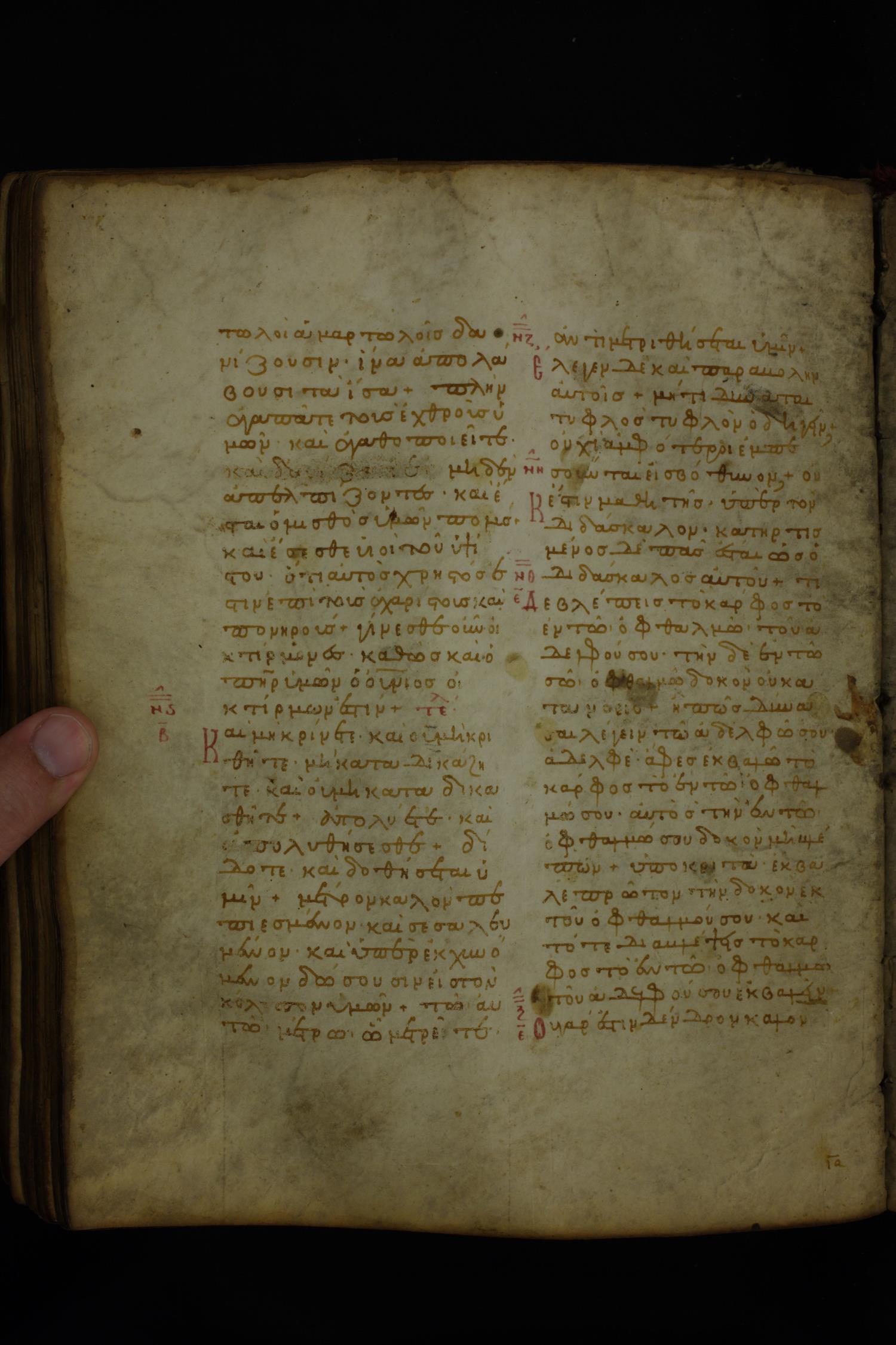 Twelfth century minuscule of the Gospels on parchment; 185 leaves, 2 columns, 26–30 lines per column.